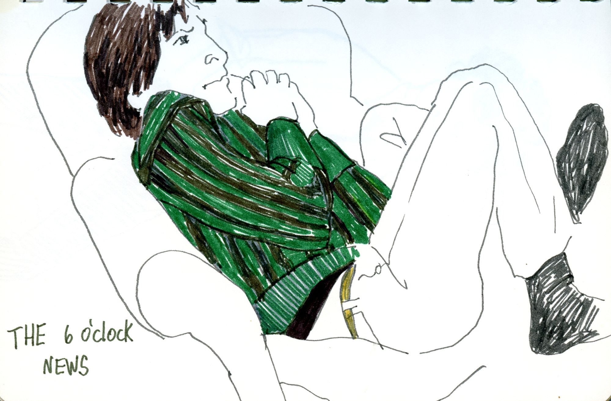 Circa 1978 Since I was the only one at the Banffshire who owned a TV, the boys would often come over to watch this or that. They'd be watching whatever they'd selected and I'd sometimes draw them while they weren't noticing.