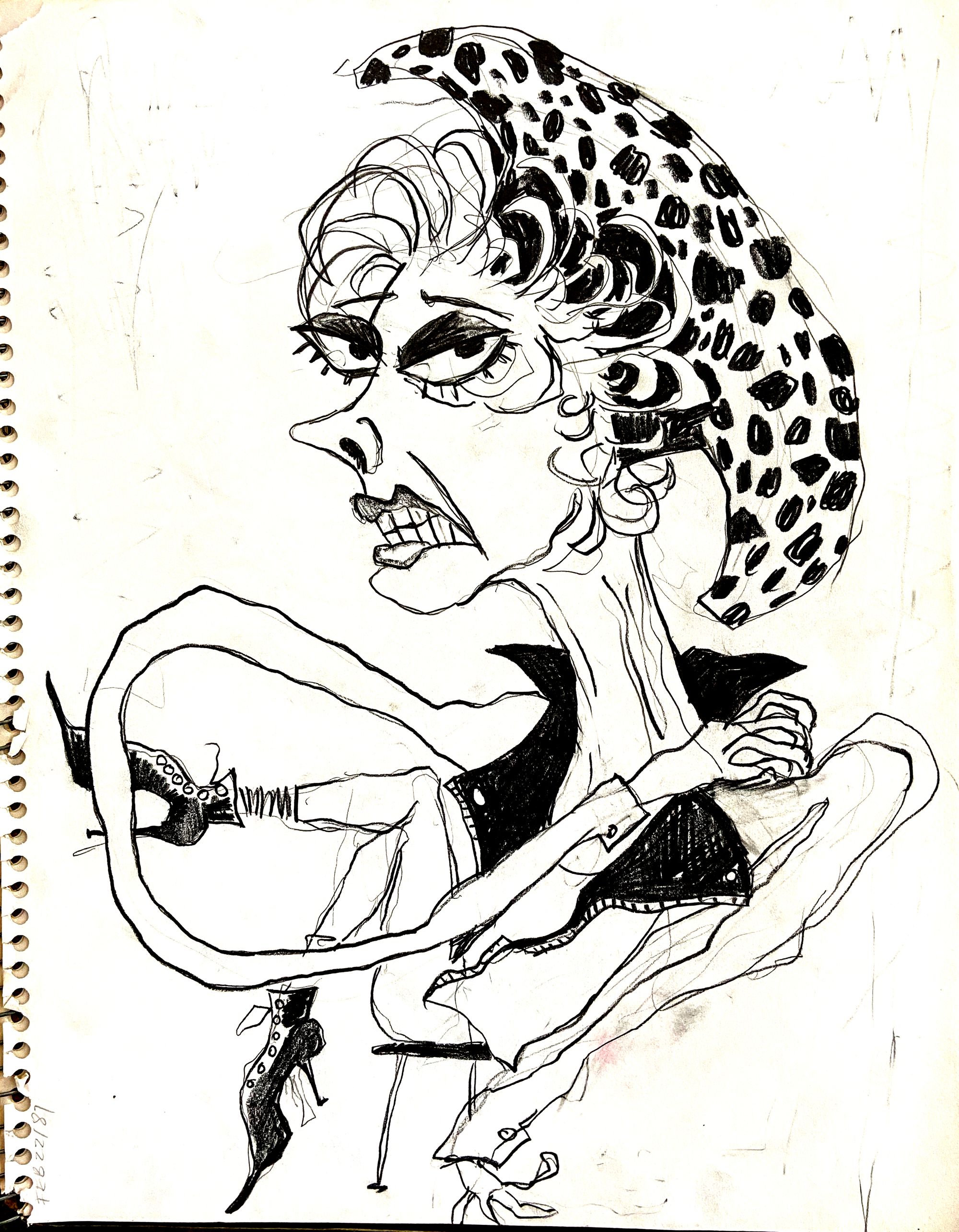 Besides telling us to do a caricature of ourselves, our Emily Carr instructor Carel said we could do one of her, too. She was a striking character, who could resist? This is a pretty good rendering of that assignment AND she liked it.