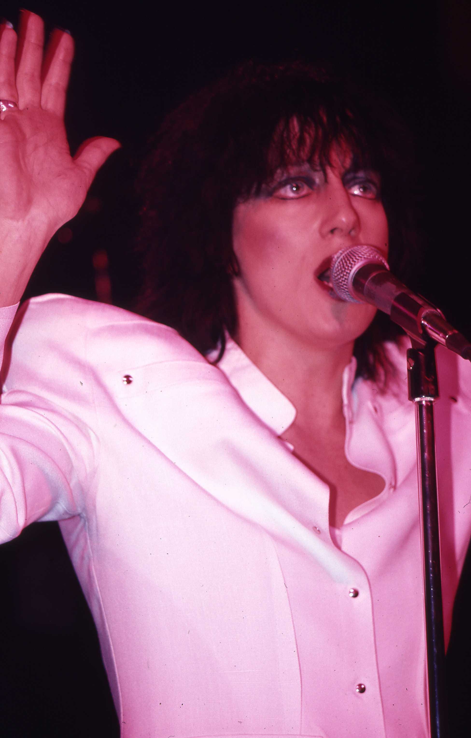 Carole Pope first rose to fame as the vocalist of Toronto-based rock group Rough Trade. Although the band’s 1980 single “High School Confidential” explicitly referenced same-sex feelings and featured controversial lyrics, Canadian audiences embraced Pope. The new wave legend was showered with Junos, winning the award for most promising female vocalist of the year in ’81 and best female vocalist of the year in ’83 and ’84 (and, of course, spicing up the broadcast with some onstage antics during the ’82 awards). [crotch grabbing]