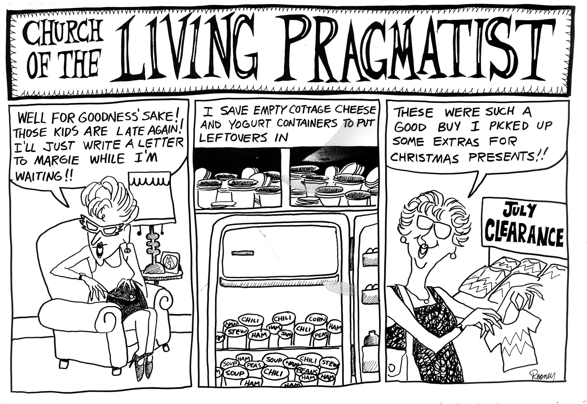 Circa 1985. This was poking fun at my mom (who recognized herself at once and fortunately thought it was funny). We used to kid her that when she died we were going to put her ashes in an empty plastic margarine container.