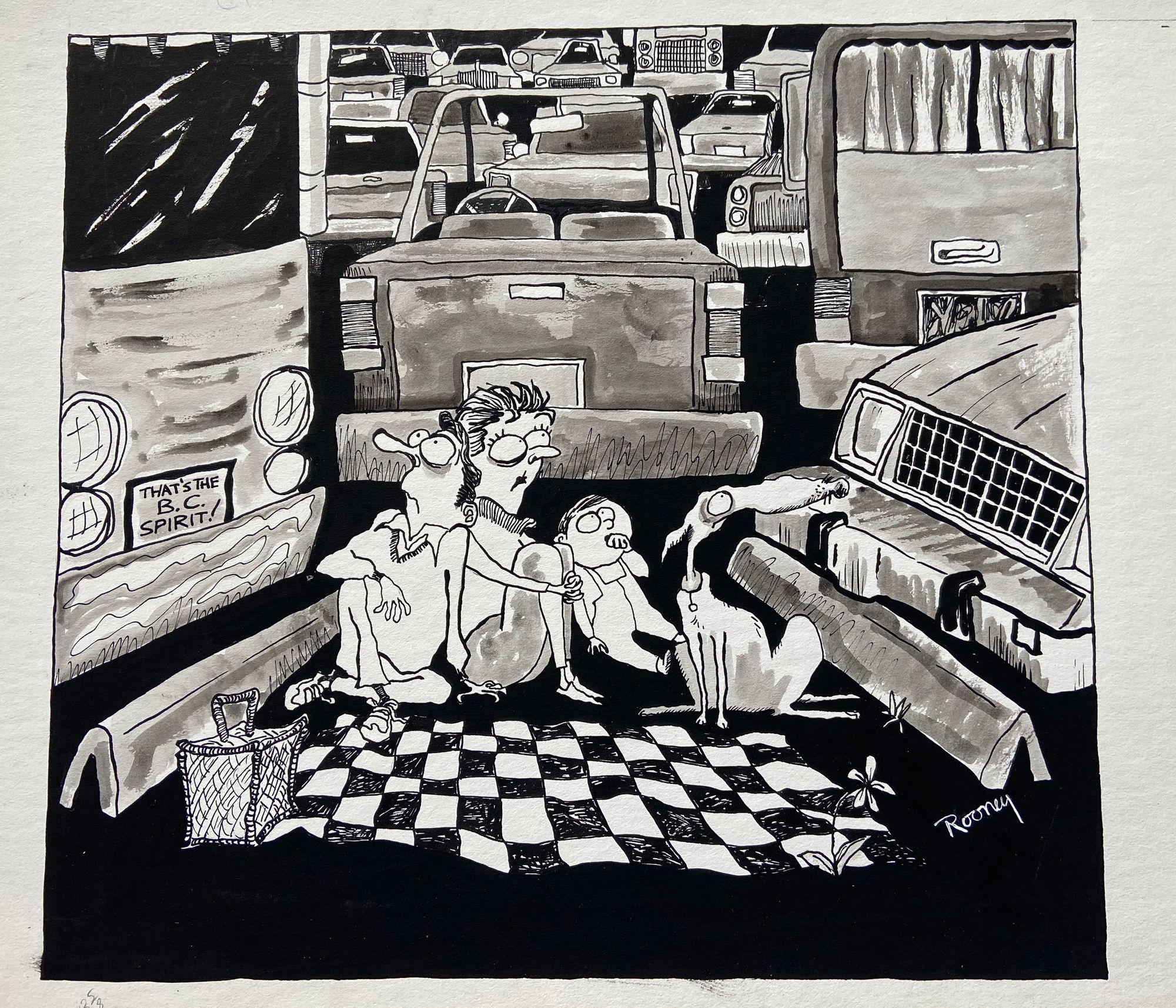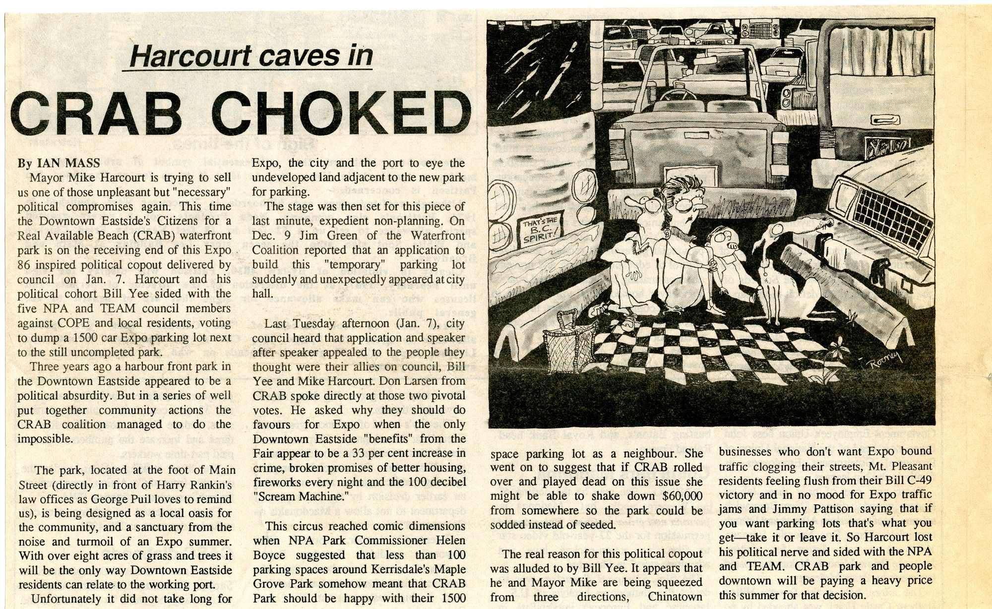 This is the last from the Out of Line editorial series. Published piece at top, original artwork below. I believe CRAB park is a tent city now and wonder what the original founders would think of that today. Is the parking lot still there?