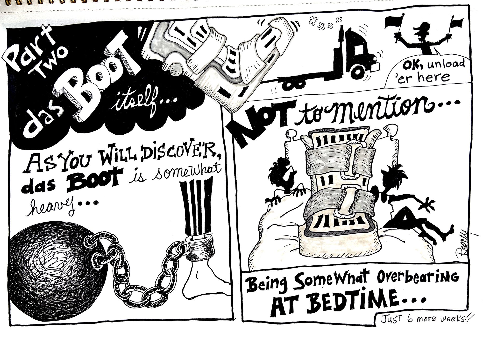 Aug 28, 2023 1 min read Das Boot, part 3 In which Joan discover how tedious a walking boot can be. Enjoying these posts? Subscribe for more Subscribe now Already have an account? Sign in