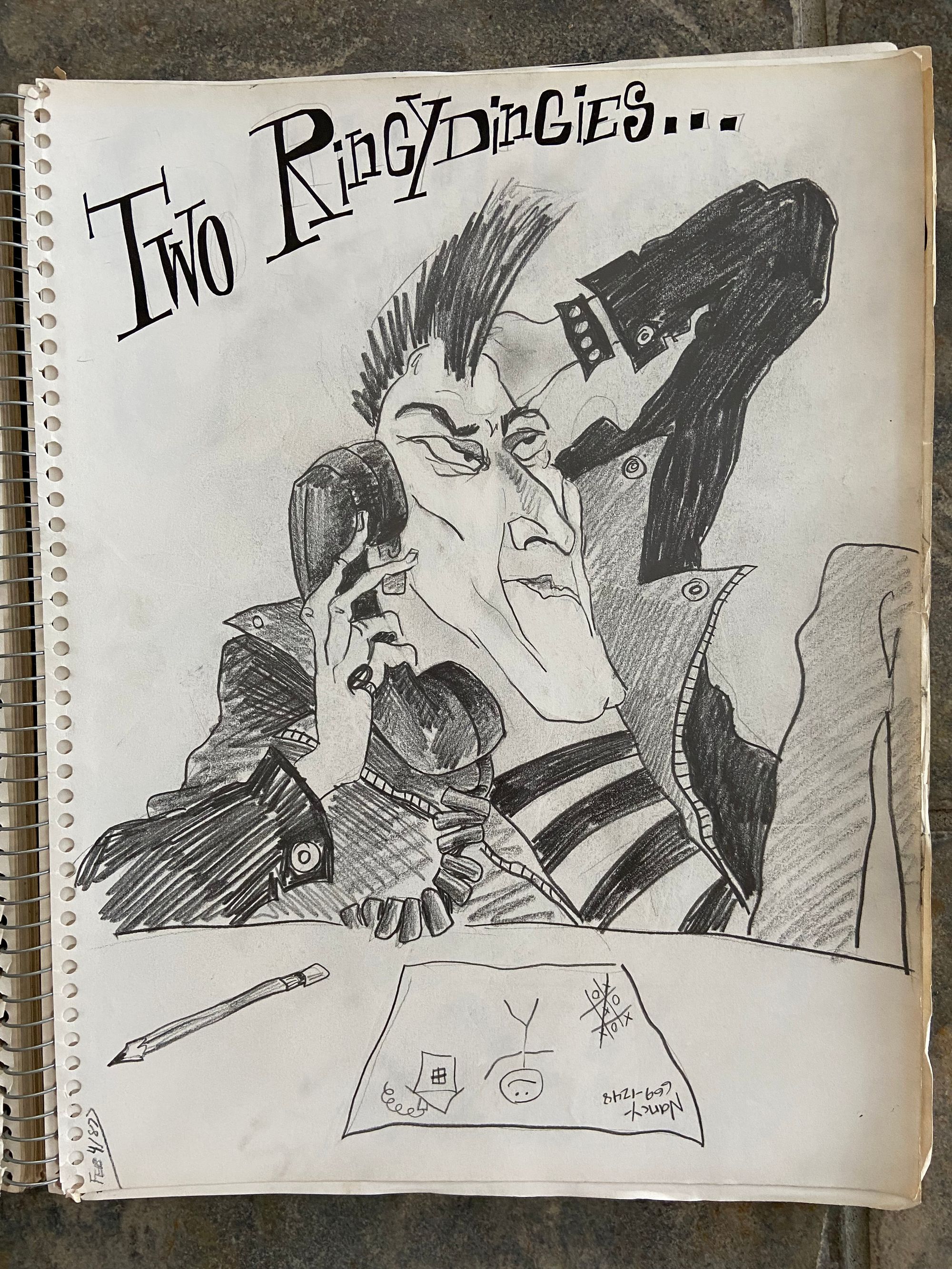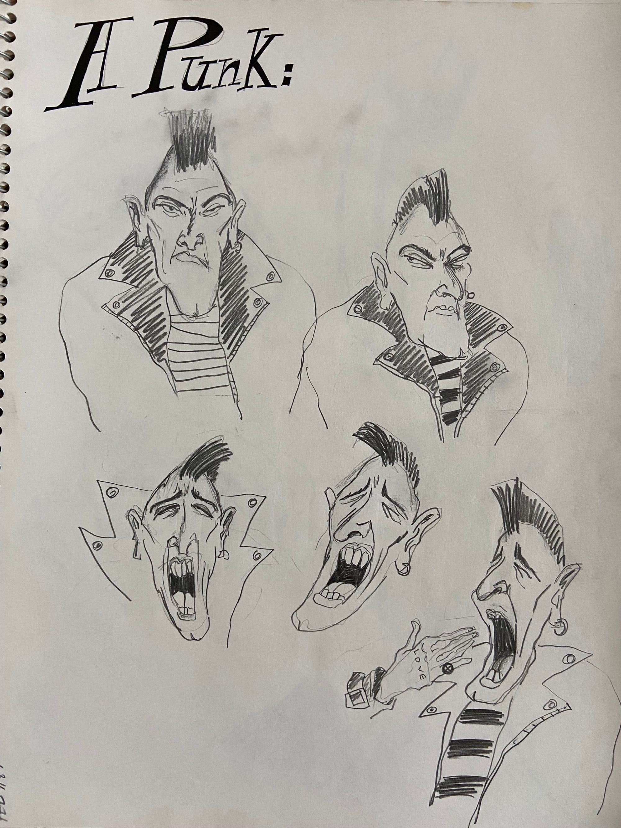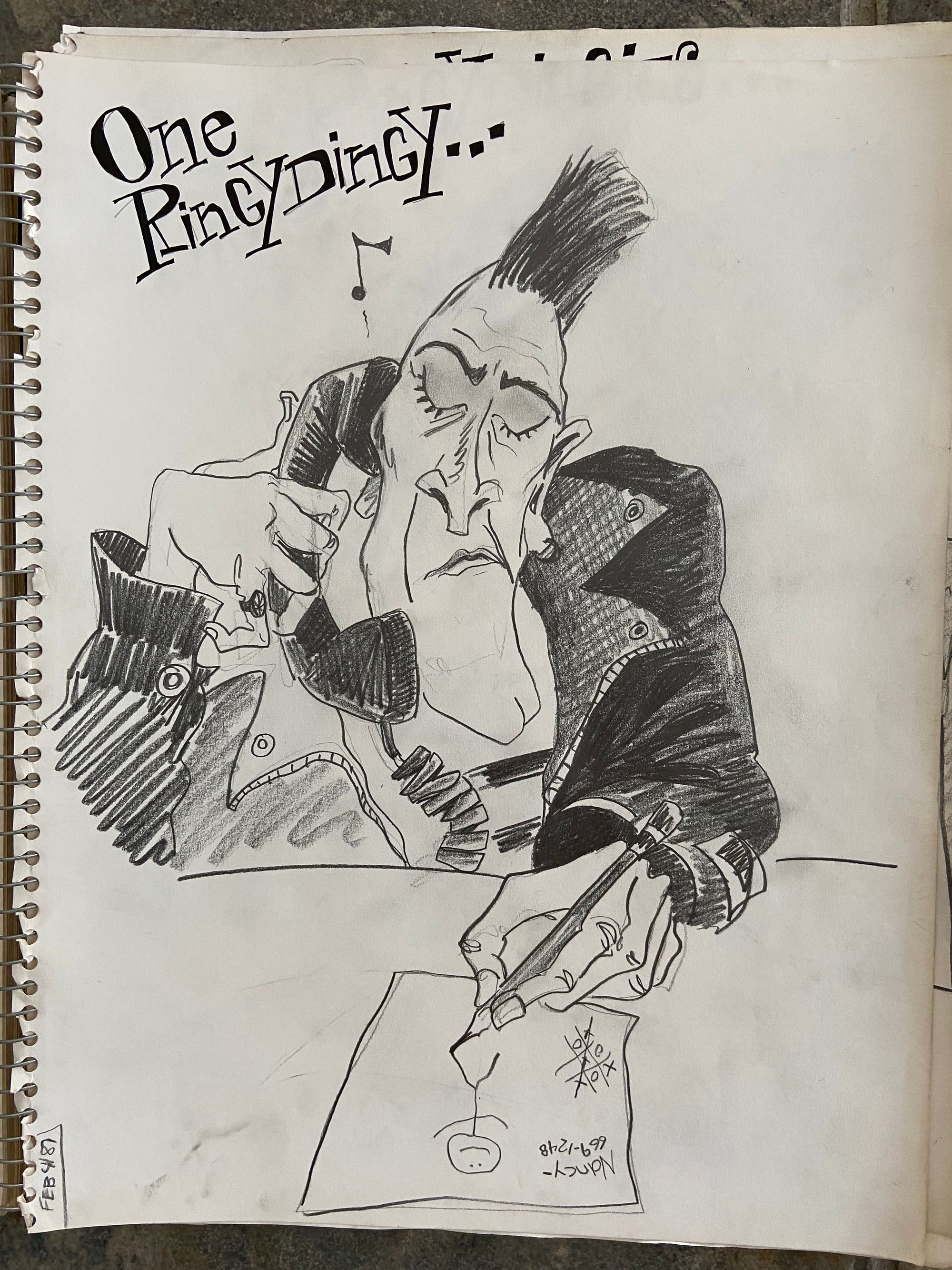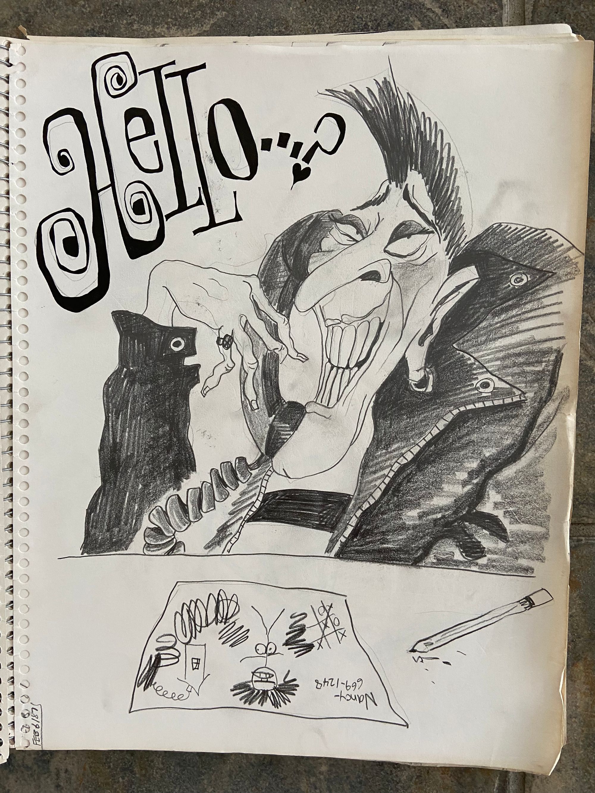 This was a class assignment from Carel: develop a distinctive character and then do something unexpected with it. So I made this menacing punk, had him call his girlfriend in a bad temper and become sweetness and light when she answered.