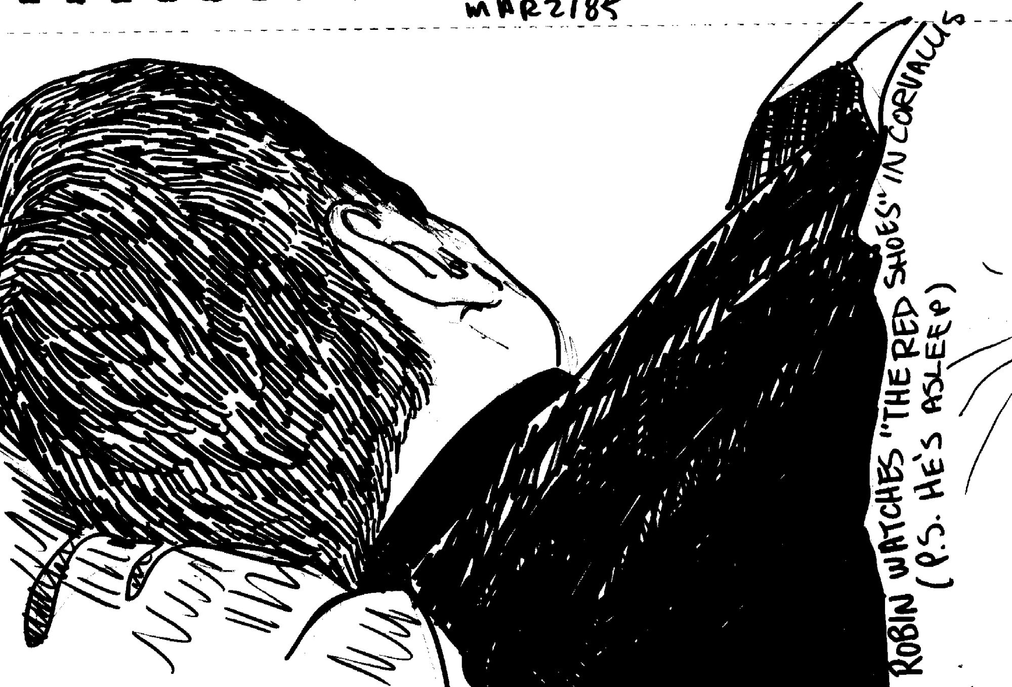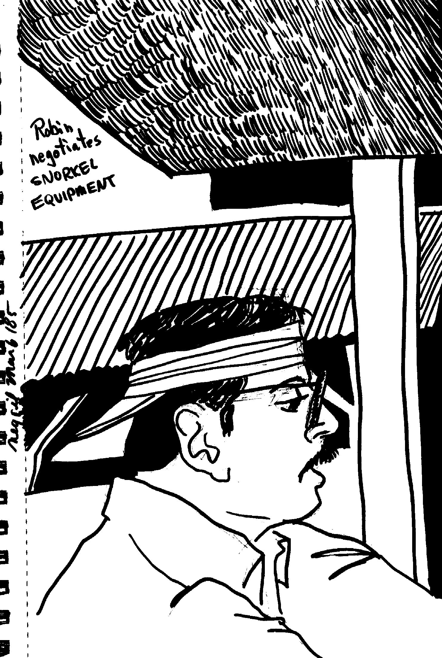 1985. Robin was one of my best friends back in the day. I did this little sketch of him sleeping at a friend's house, en route to Jamaica.