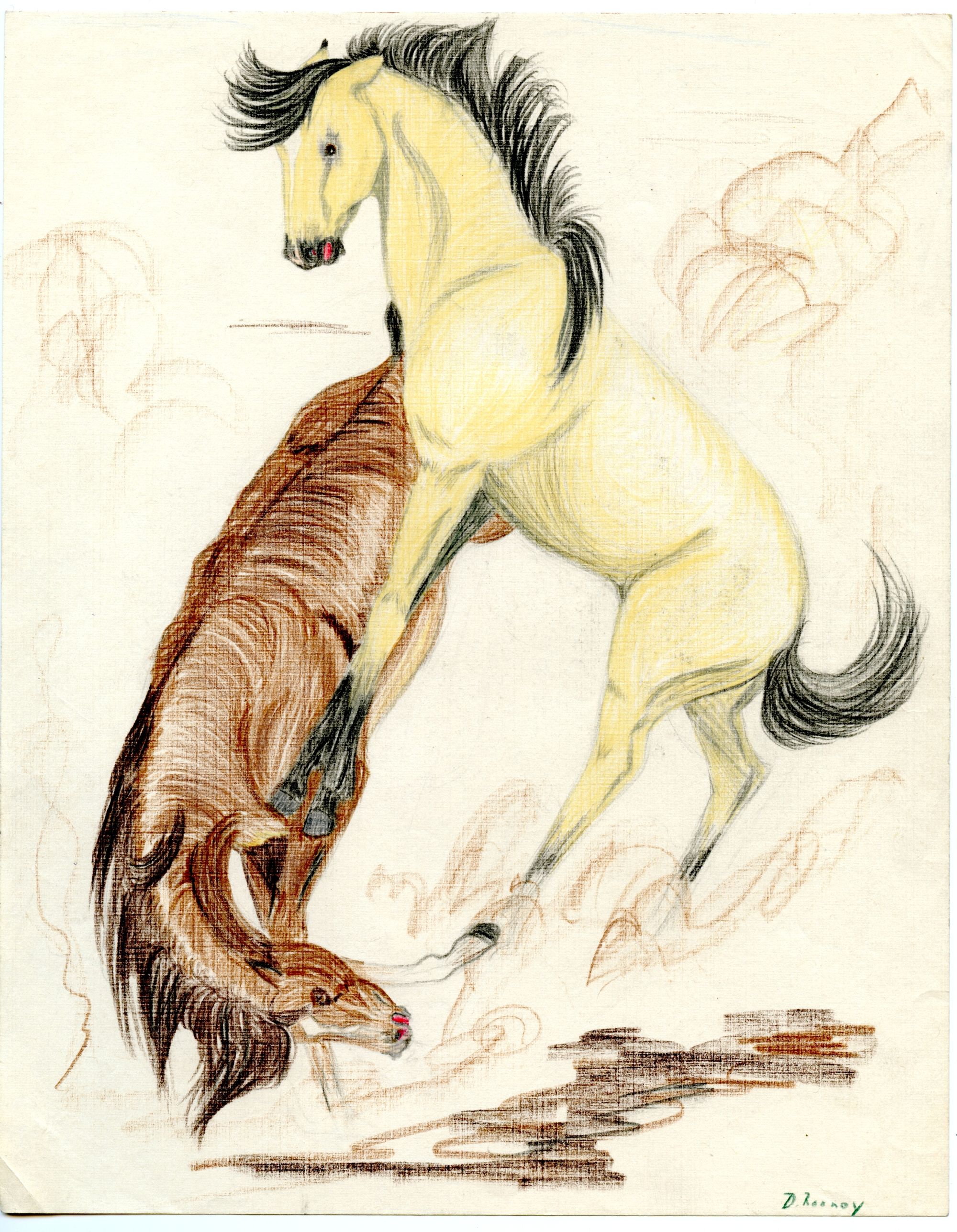 I did a lot of horse drawings when I was little; this is one of the few that has survived. It was done in coloured pencil – Laurentian brand.
