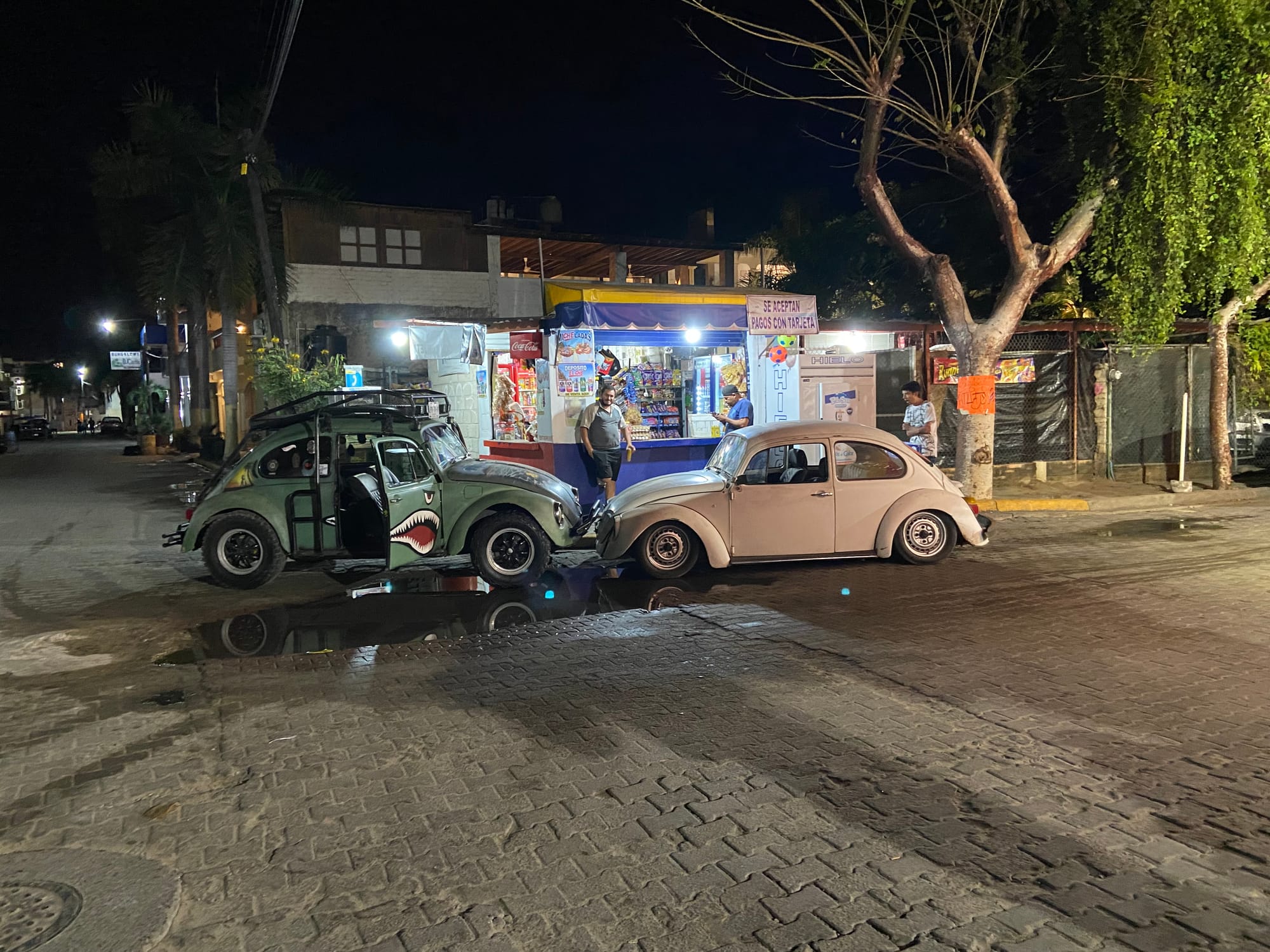 2023 Guayabidos night scene. Guayabidos is a little town north of Puerto Vallarta, as yet mostly untouched by the Senor Frog culture of places like Cancun. These were just some dudes hanging out with their cars and a beer. Maybe they were doing drug deals but none of the places we walked at night seemed dangerous or really sketchy. Just the neighbourhood vibe. I hope Guay stays that way.