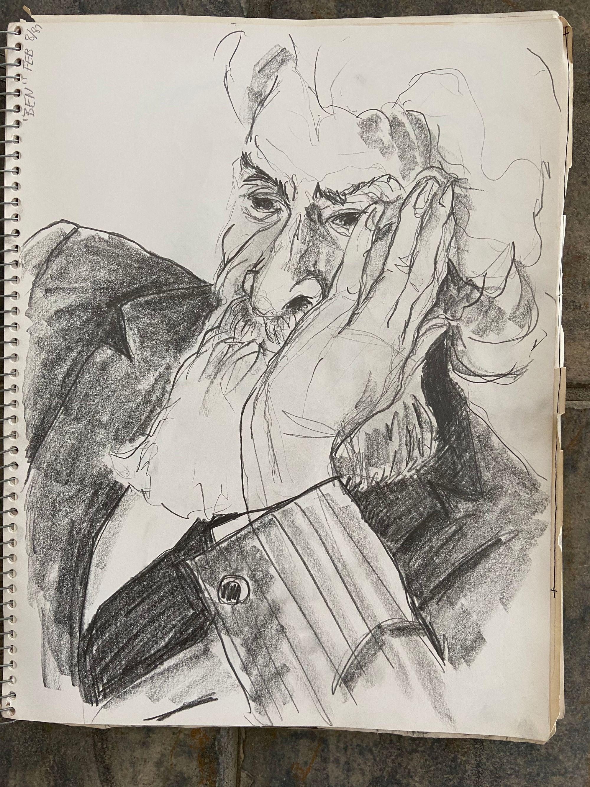 Both Carel and Martin sometimes brought models into class for us to train our eyes for drawing. This was 'Ben' who sat for us in a dress suit jacket. (models were usually naked but Carel wouldn't ask elderly models to disrobe) He had a marvelous thick mane of pure white hair and could hold a sitting pose for quite some time.