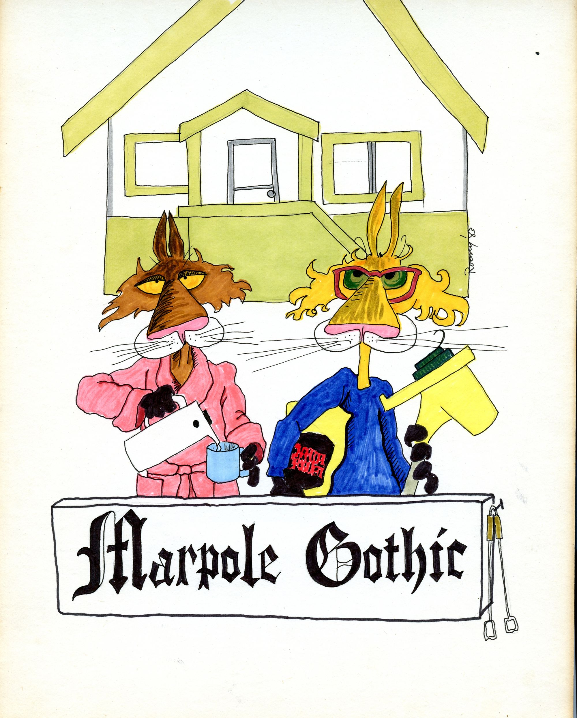 I left the West End and moved to Marpole in 1983. I hadn't lived in a house for years so it was a bit of an adjustment, leaving the bustle and confines of downtown apartment living for the relative wilds of Marpole. I wound up doing this series of cartoons joking about 'living in the suburbs'. Most of the cartoons I drew during that time used cat figures and I consider this series to be among the best of that genre.