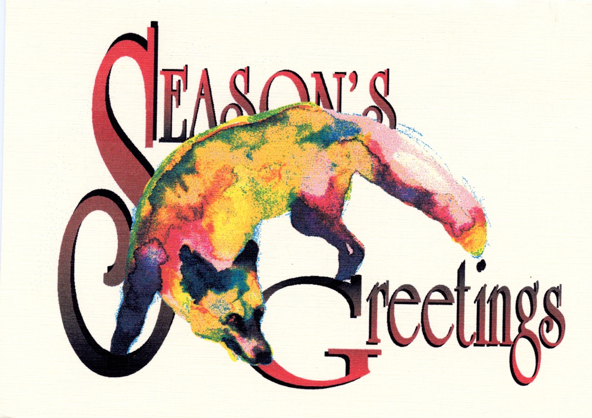 I didn't always do cartoons for the annual Christmas card. In 1990 I used the Tomten Fox painting, manipulated the colour with Photoshop and added the text with Corel.