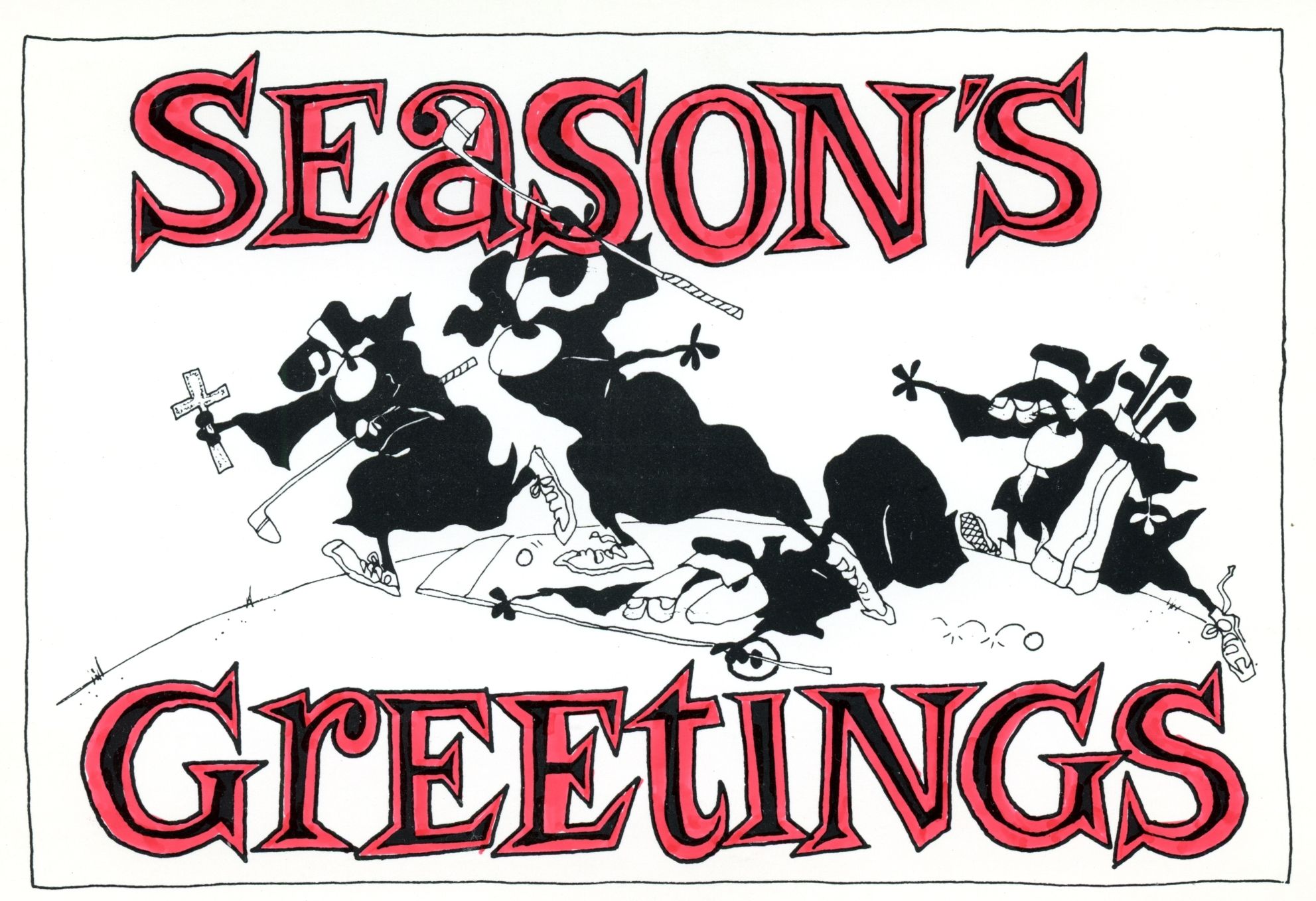 This was a gag based on the outfits my partner Joan and her team wore to a golf tournament that year. They went as nuns and caused quite a stir, mostly on the way TO the course. I guess people weren't used to seeing nuns drinking and smoking in a moving car.