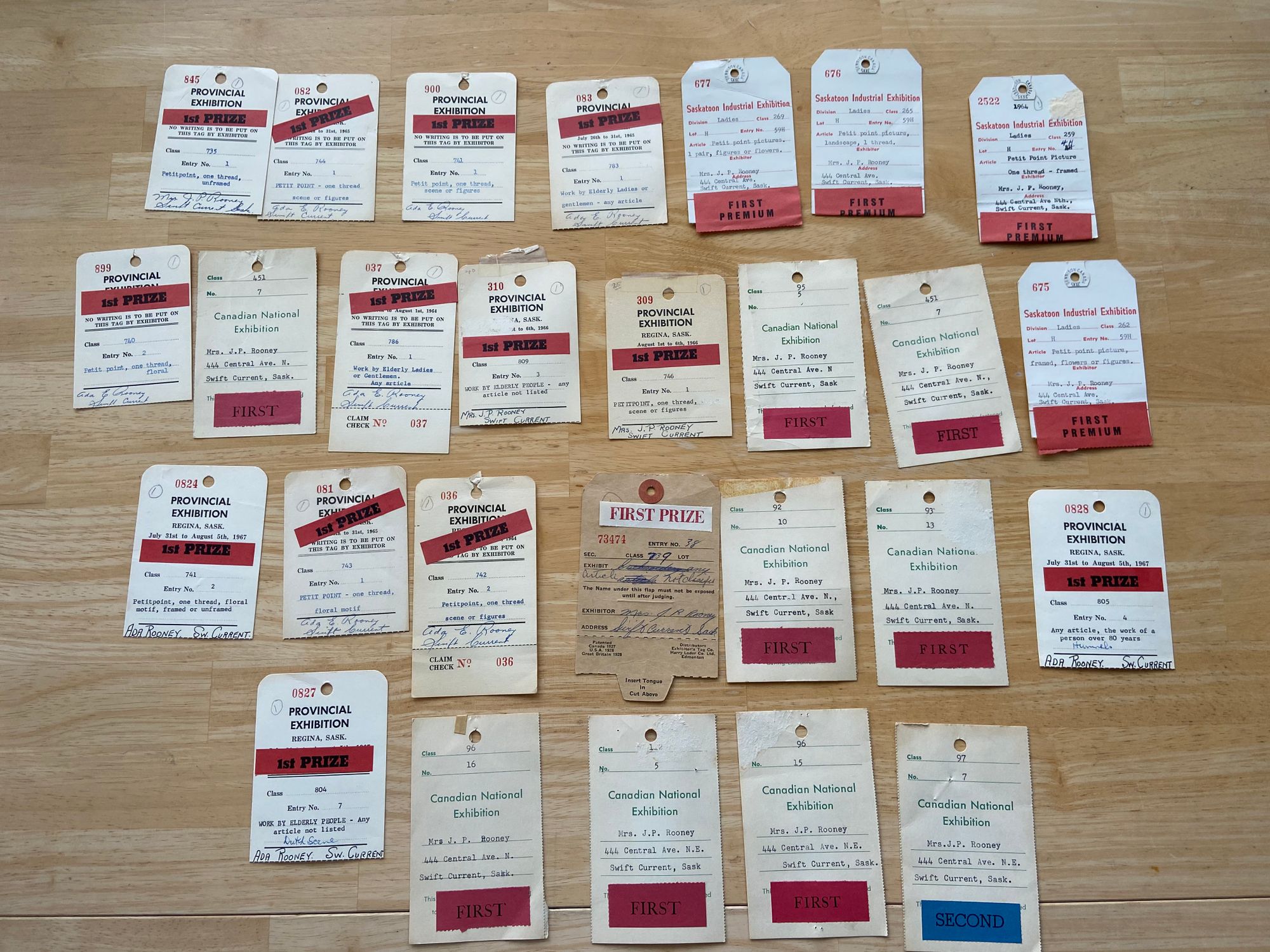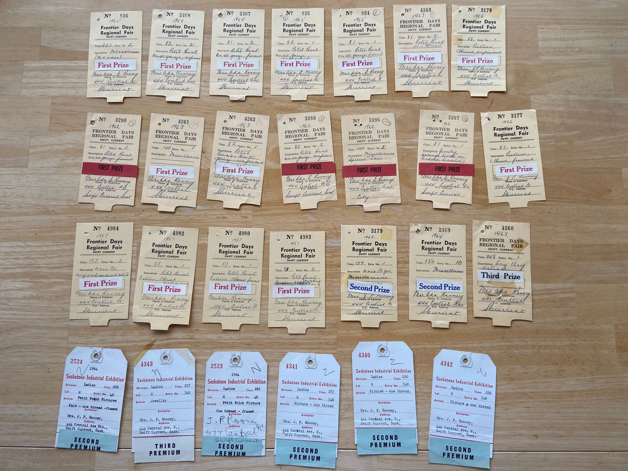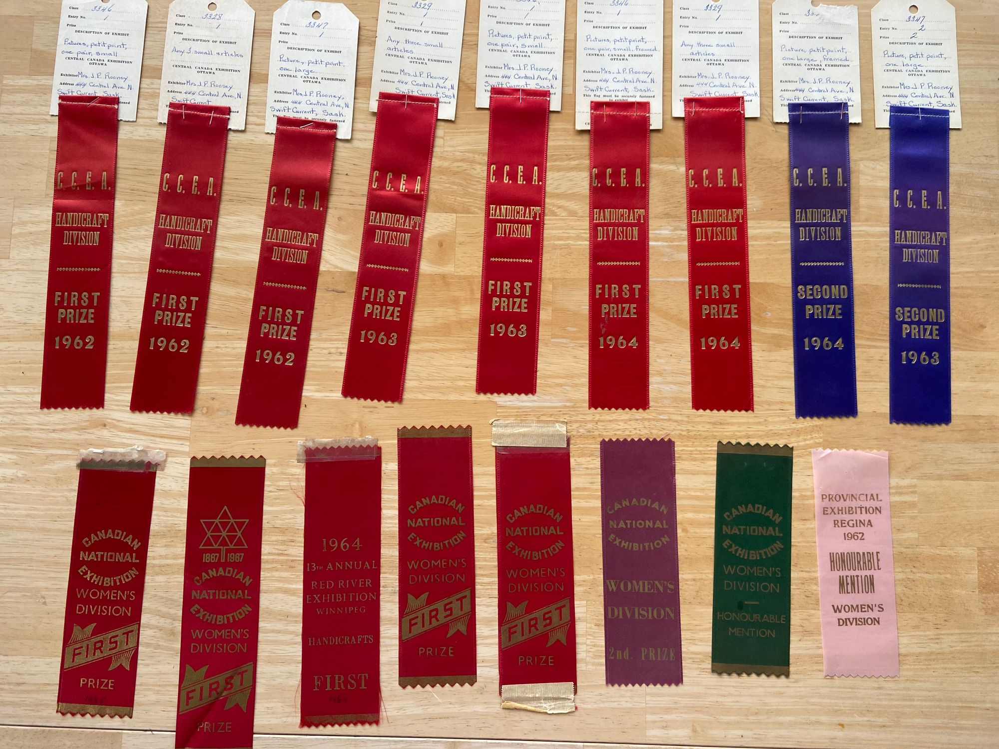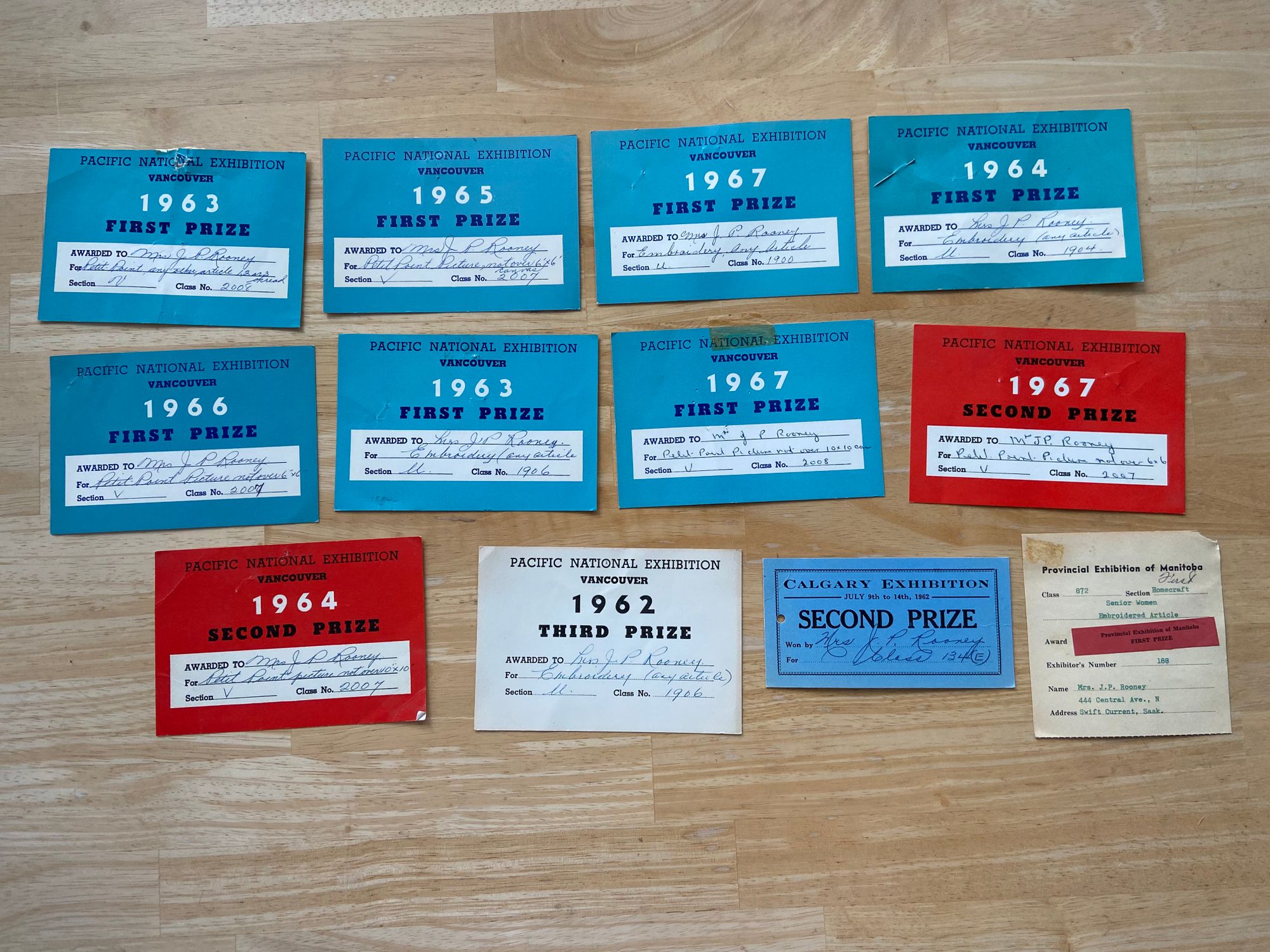 She never drew that I knew of, but she was a master at petit point, painting figurines and tooled leather. She entered her work across Canada in the summers. Many thanks to my sister in law for saving and sending me Gramma's awards (see below)