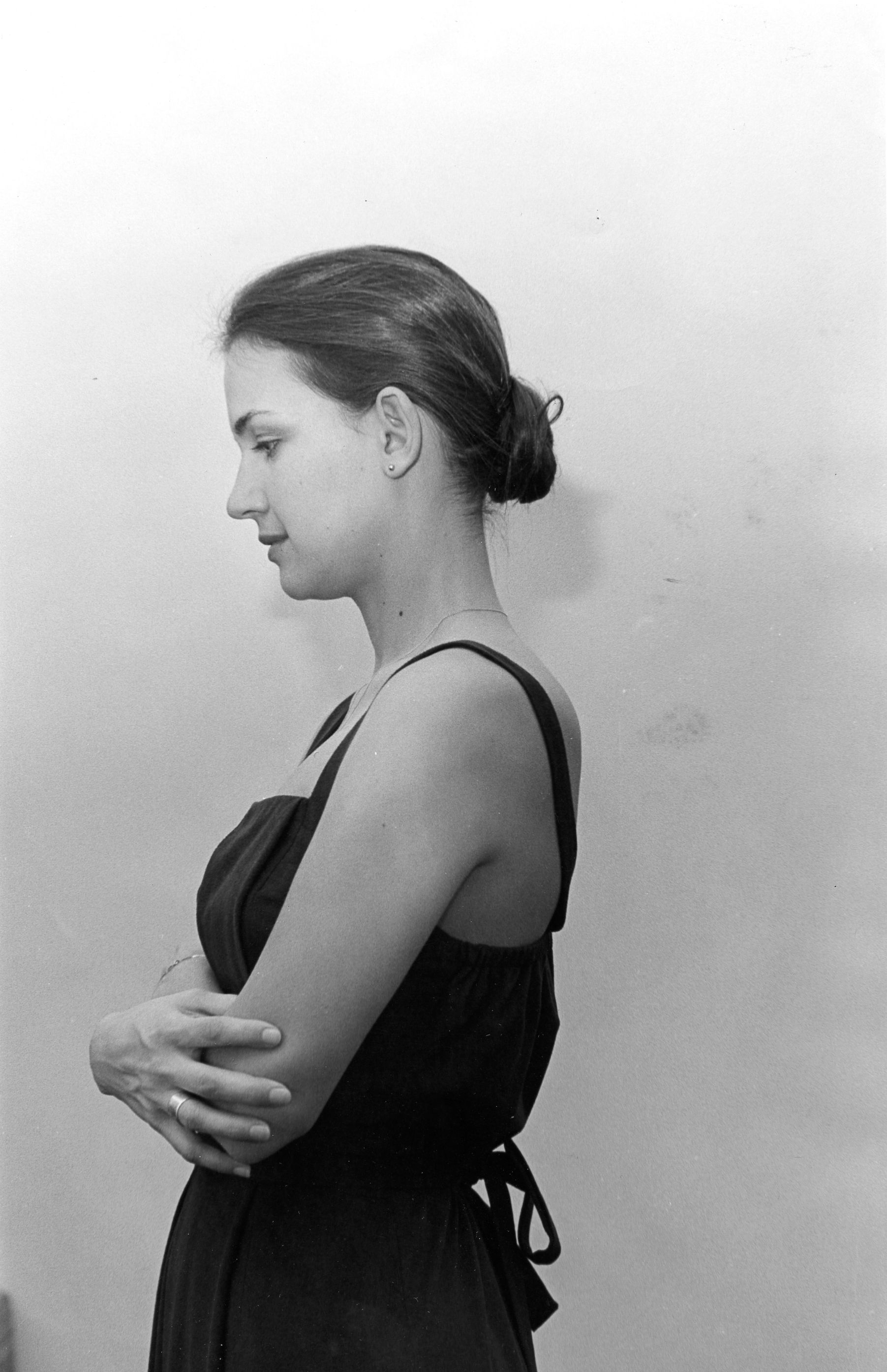 Circa 1979. Patrice was a friend back in the day when everybody was scratching around looking for ways to make money and nobody had a steady job. She was unusually beautiful so her girlfriend decided she should try modelling. You needed a portfolio to peddle your looks of course, and Patrice had no money to pay a professional photographer. I did a series of shots of her in return for dinner at their place. I don't think she ever got any modelling gigs – I somehow doubt she would have put up with the modelling world even if she had. She wound up getting into graphic arts, doing layout for a local newspaper.