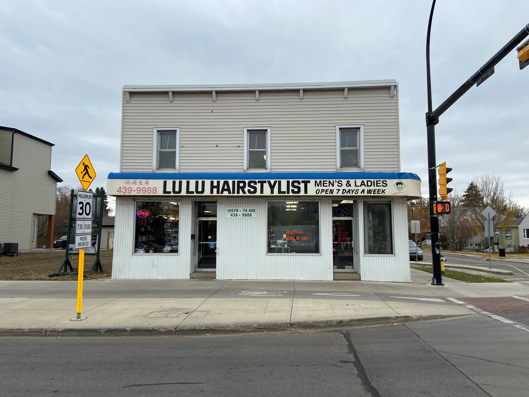 Although these are recent photos, they could easily have been taken decades earlier. I found myself stuck in Edmonton this fall and needed a cheap haircut with streaks. A hunt through the internet turned up 'Lulu Hairstylist', a short walk from my location. Lulu herself did the honours, ruthlessly applying bleach to swaths of my hair then snipping and razoring for the desired effect. I figured this would be either the worst haircut of my life or surprisingly acceptable. And it turned out to be surprisingly acceptable, I'm happy to report.