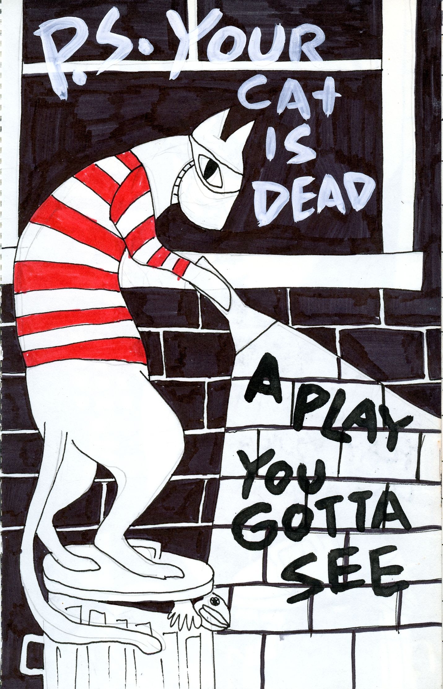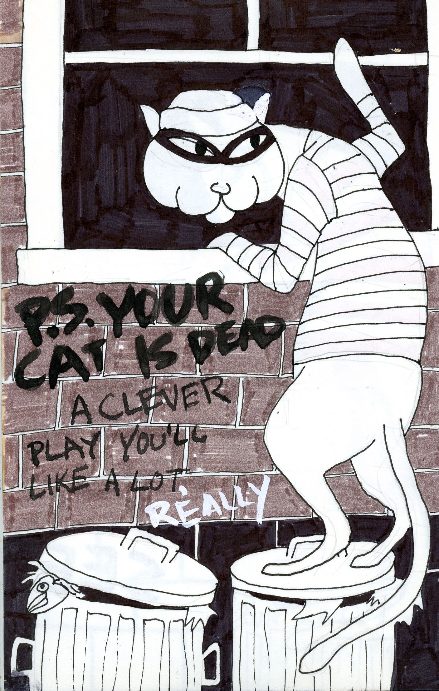 After the Fringe Festival run of Ratz, Pink Ink productions wanted to stage another play, "PS Your Cat is Dead". Of course I wanted in on the action and did a number of roughs for possible handbills. Alas, the project never got off the ground.