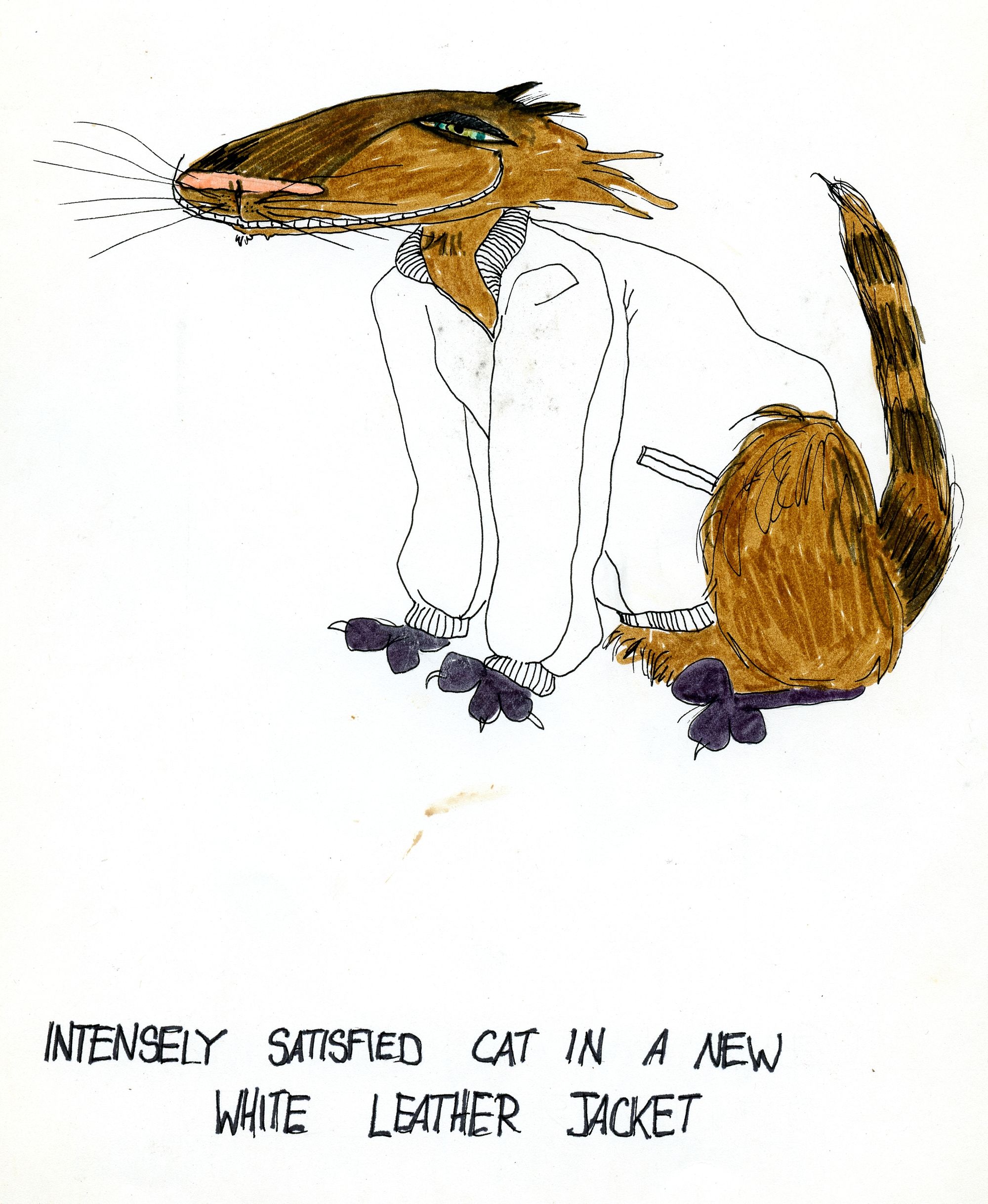 QuadraTails was a series of cartoons I did to amuse the staff at the Quadra. I worked as second bartender Wednesday and Saturday nights for about a year (while still working my day job at VSB and let me tell you, Thursday mornings were a HARD get up) The protagonist cat is me, of course – I actually owned a white leather jacket – and although the adventures are mostly made up, they are based on what I observed over many late nights. So thank you again to Ronald Searle, who continued to inspire me with his writing and drawing style, and here begins "QuadraTails, Part One: Dress for Success"