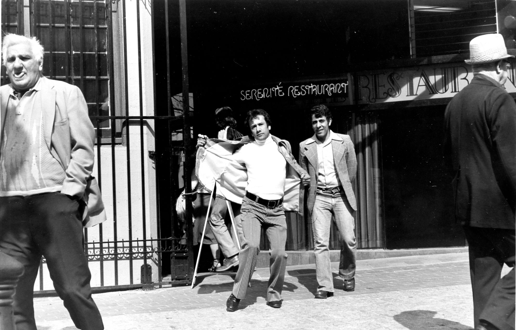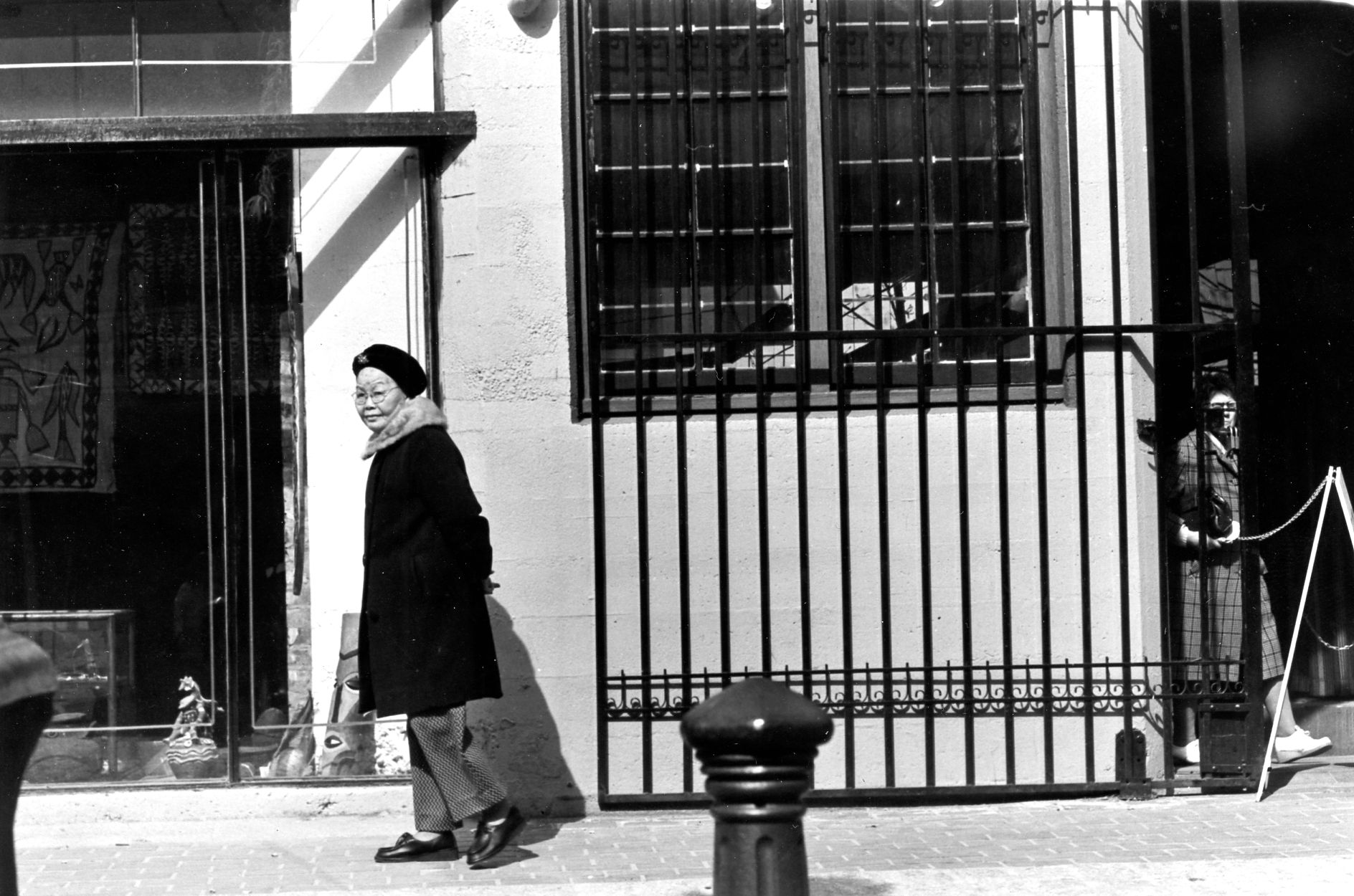 These were taken in Gastown, possibly the same day as the cowboy boots and bathtub motorcycle. I was using the telephoto and stationed myself in one spot, taking repeated shots of one doorway area, just to see what I'd get with the same framing. The lady read the camera right away, as did the gentlemen below, with somewhat different reactions! I tried the same technique later in front of a liquor store and was promptly threatened by an irate customer so that was the end of sneaking shots of strangers. At least in front of liquor stores, anyway.