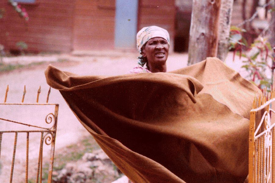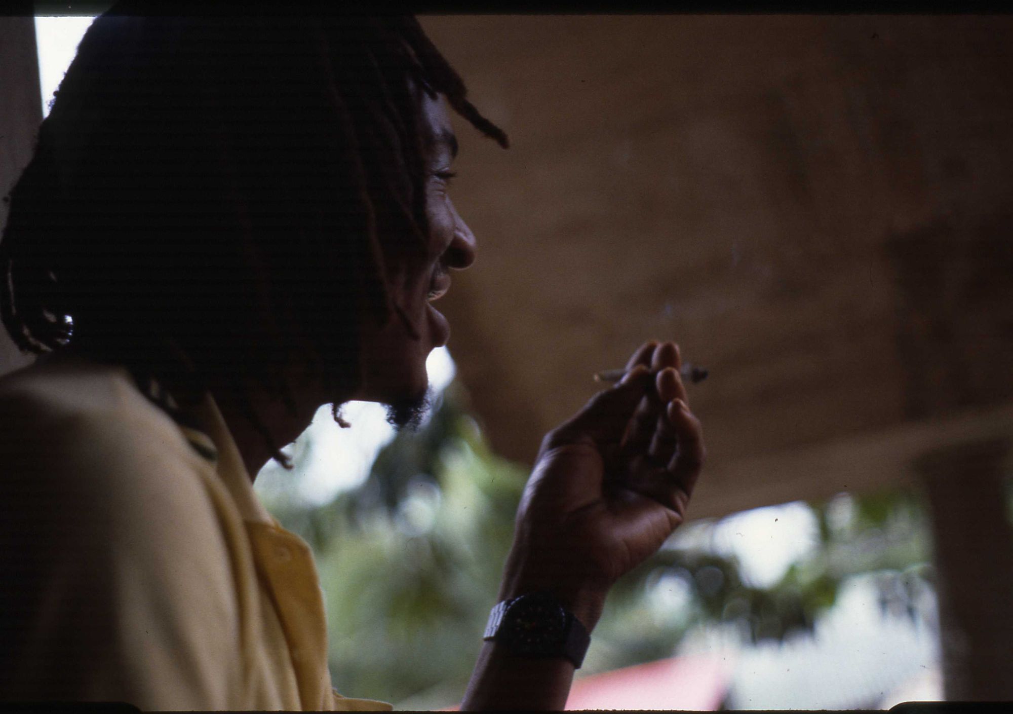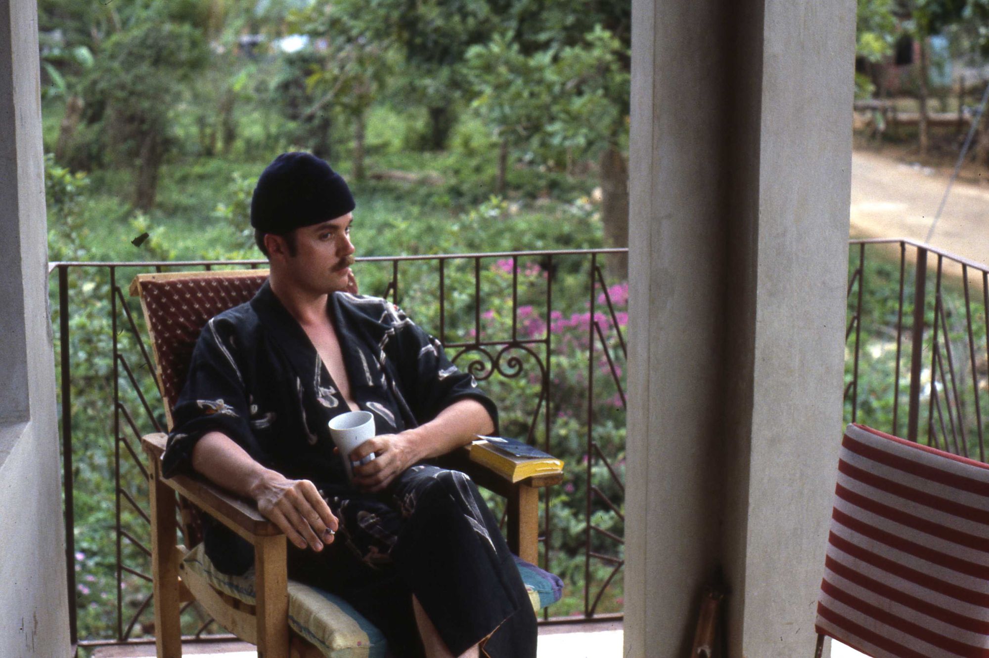 The first day we arrived in Negril Robin made a deal with Miss Ruby's son: bring us joints every day and you can have my watch. So Roy took the watch and dutifully brought us joints every day which he'd cheerfully smoke with us. Above right is Roy, smoking a joint and wearing his new watch. We were stoned for two solid weeks. Upper left is Robin with his morning coffee . Bottom shot is Miss Ruby herself, washing sheets. These are scans of slides, sorry the quality isn't better.