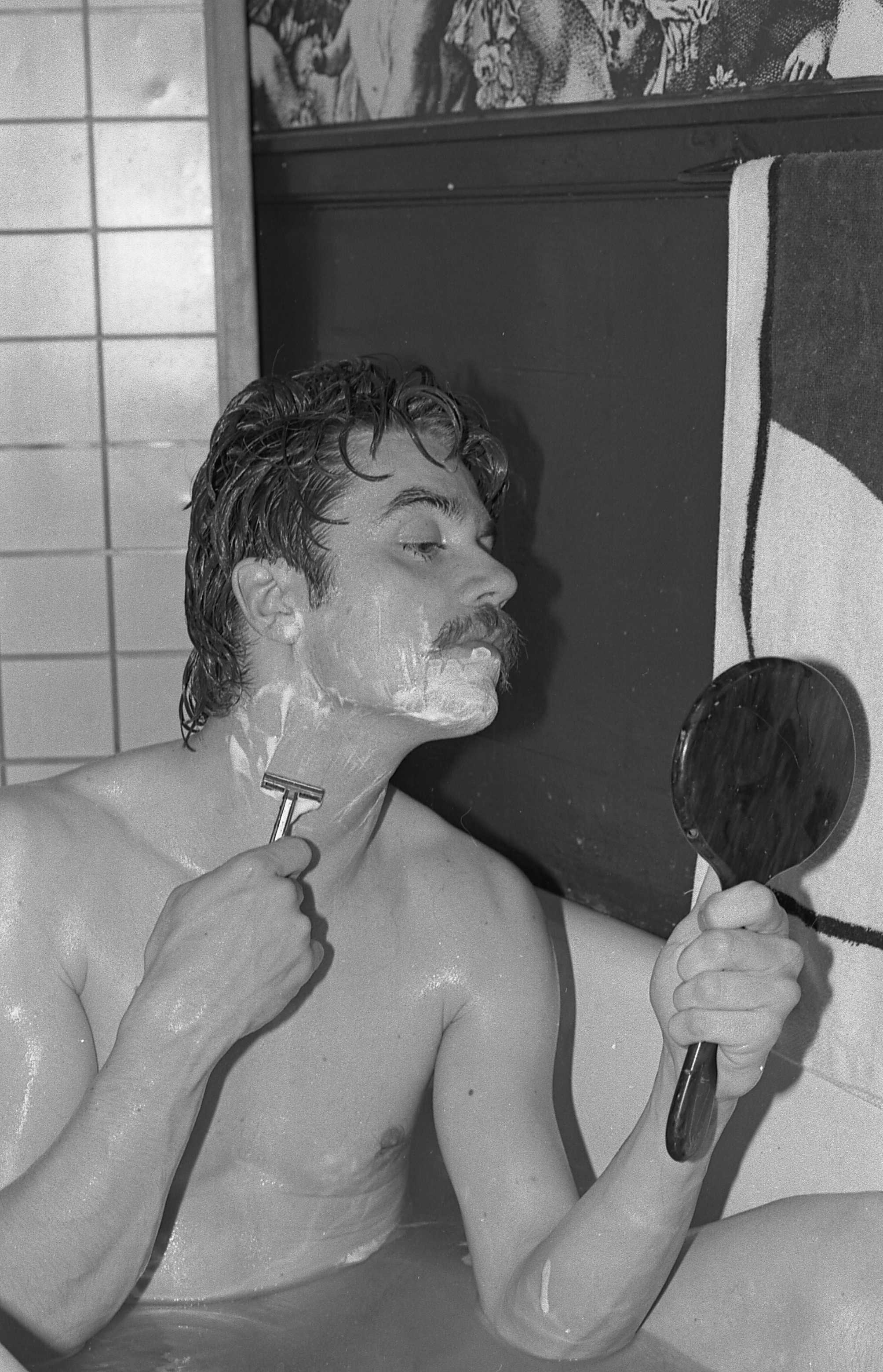 Everybody except Terry shaved some part of their face, but now that I think if it, Robin was the only one I ever saw shaving. I doubt if anybody had an electric shave, that would have been too expensive. All of us were quite uninhibited about nudity in those days and would happily carry on conversations with one person in the bathtub or a similar state of undress. (Don't worry, gentlemen – I will never put the really explicit ones up).