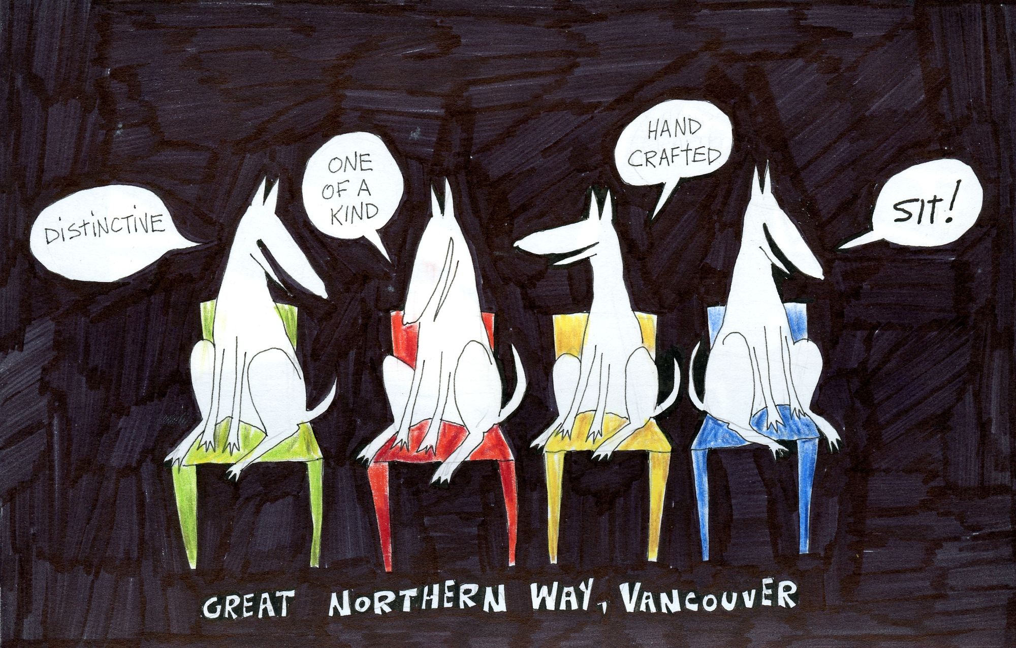 1985. An acquaintance of mine was into furniture making and wanted to start her own business, specializing in settles* and chairs. This was a design idea for an ad that would have appeared locally.