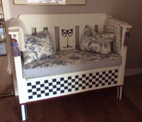 *and this is a settle. It's an old term, not in common use today. This particular one is oak, and was in the front porch of the family home for years. When the house was sold my sister in law rescued it and refinished it as you see here. (she could fill her own blog with her sewing, crafts and restoration projects!)