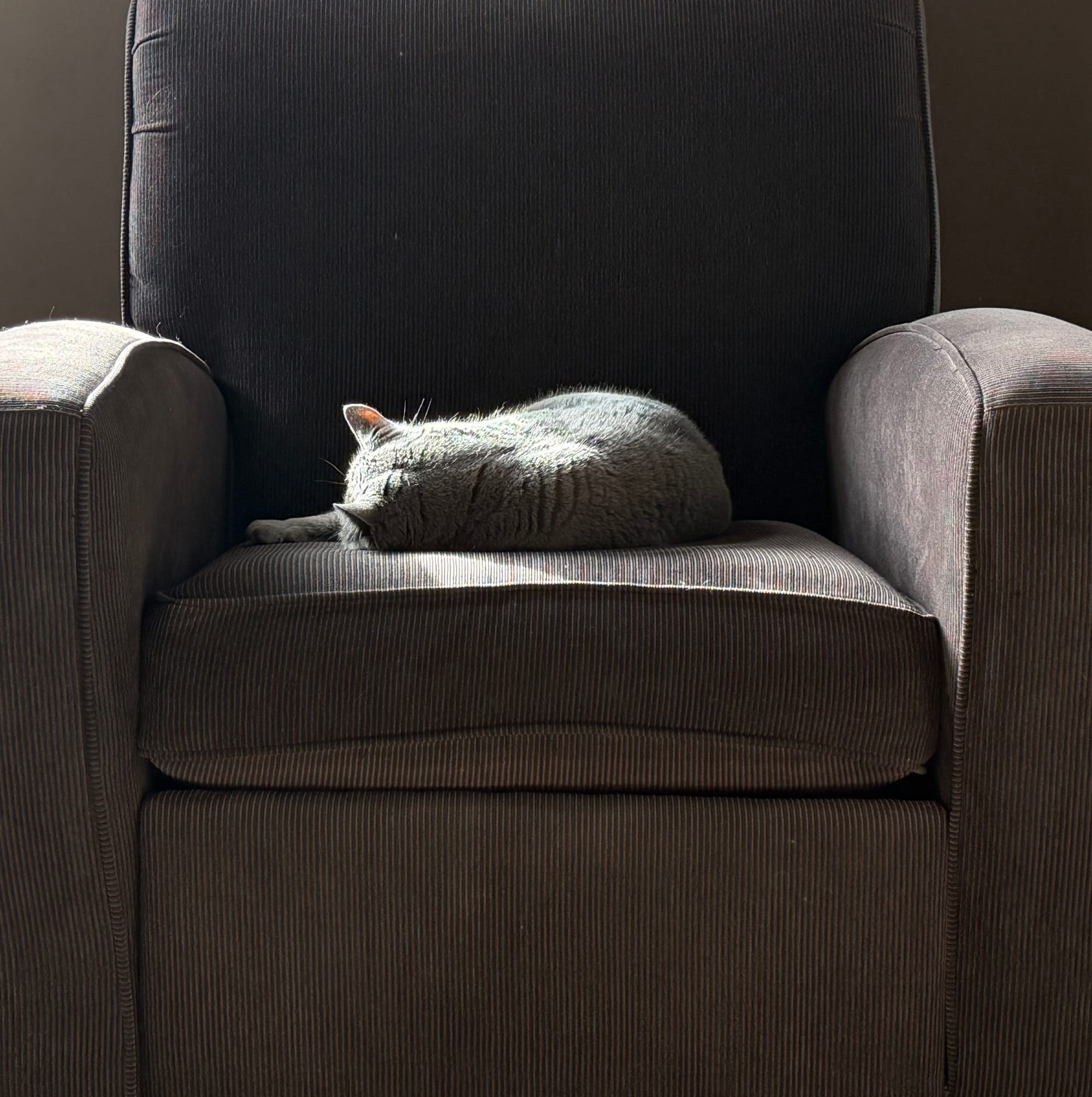 This is Obi, my friends' Chartreux cat. The breed is known for being quiet and calm, as you can see.