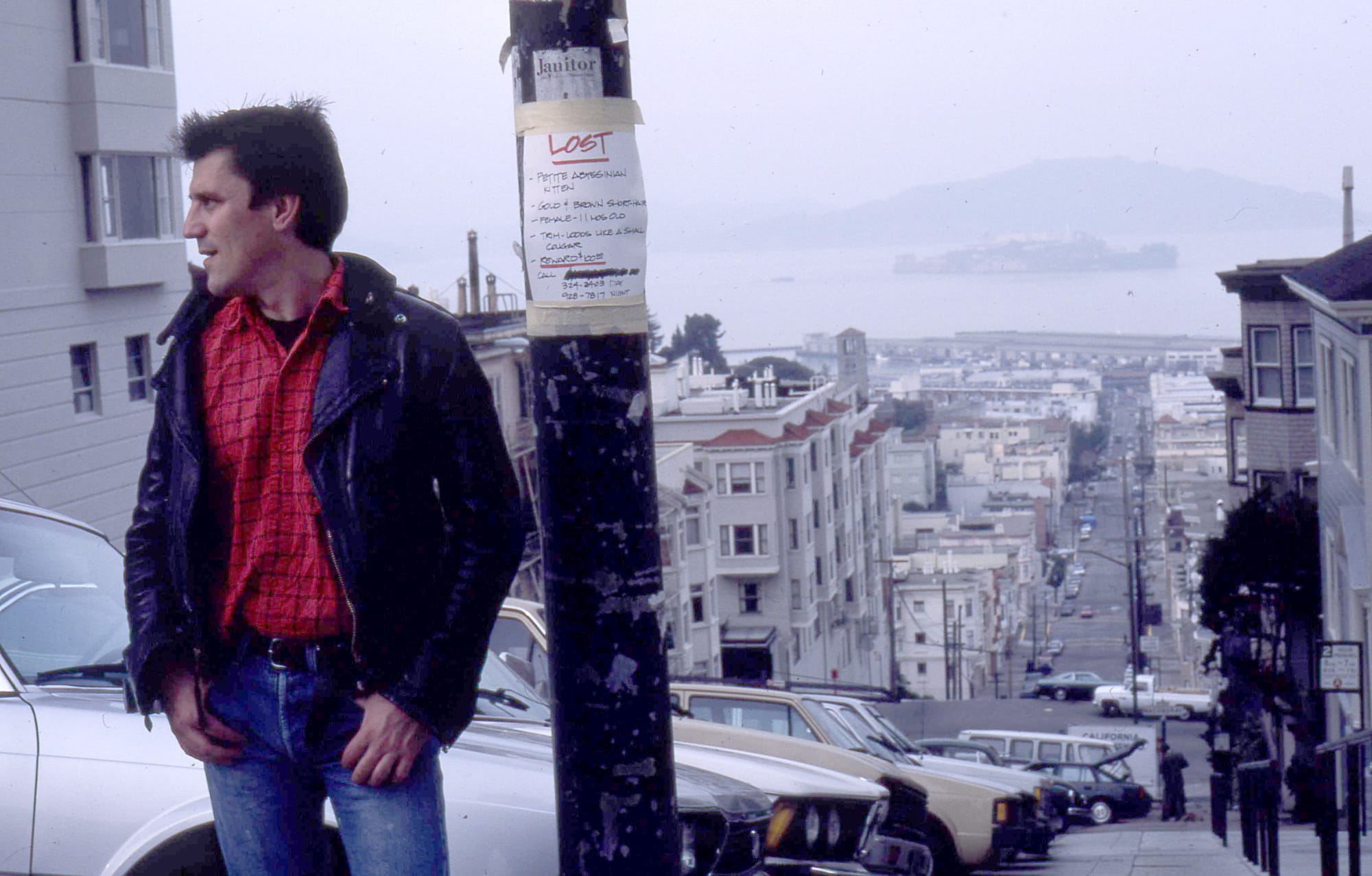 I used to visit dear friends in San Francisco every summer back in the early 80s. Stephen was my walking buddy in those days and we clocked mile after mile, always with our cameras close to hand. Stephen didn't mind being photographed and neither did I so there must be hundreds of such portraits documenting our explorations. This was at the top of one of the iconic steep hills in SF, but I don't recall the name.