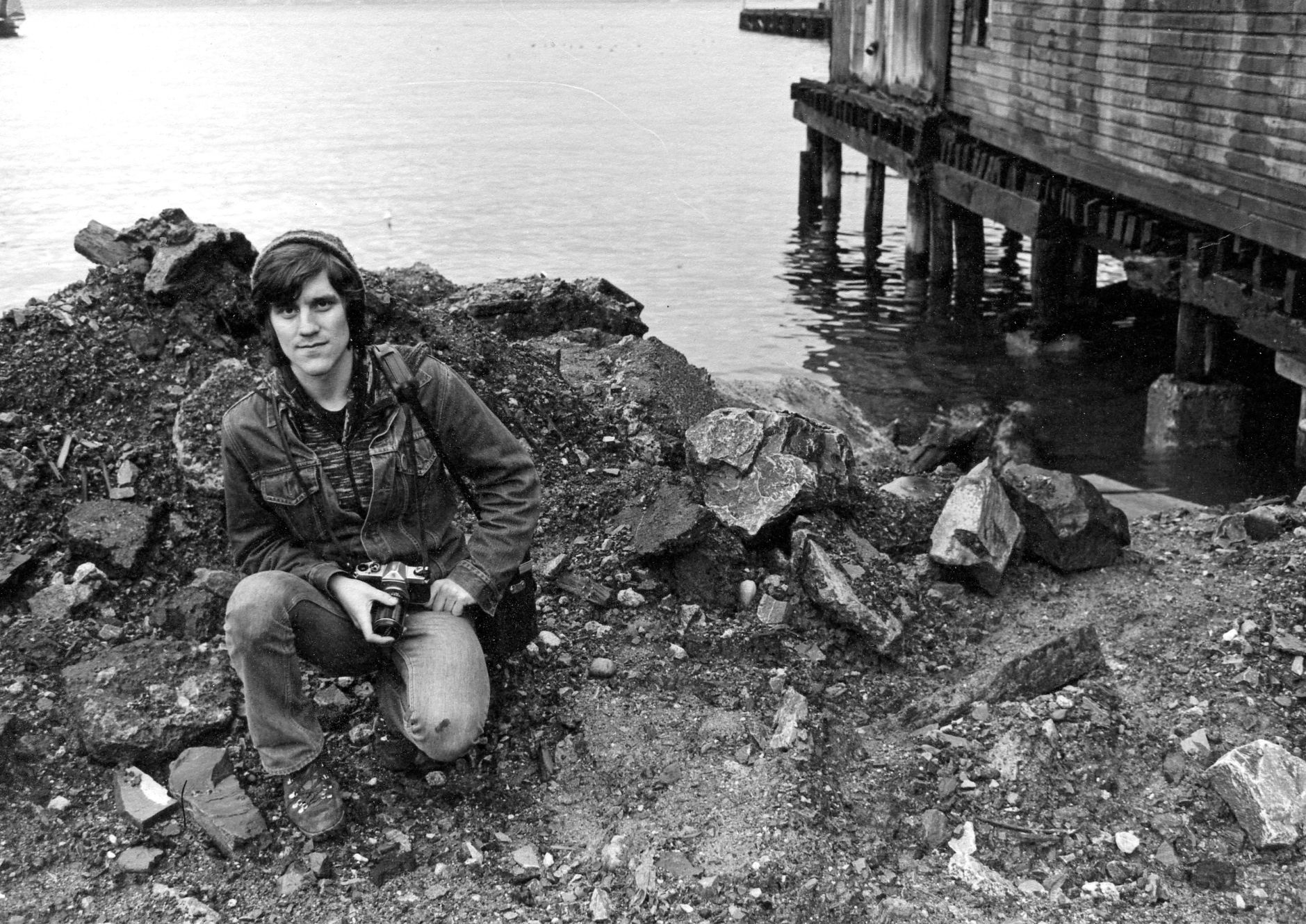 Stephen was my best friend in the Banffshire. We met in Graphic Arts school in 1975 and took to each other immediately. I got him started on B&W photography – he was a quick study -- and for the next four years we documented our lives and everything around us. Oh, we had some fun. This is one of my early favourites, taken in Coal Harbour on our school lunch hour. I love this shot because it calls me back to that time, our friendship, and our youth. Youth and knees that could hold a pose like this for several minutes.