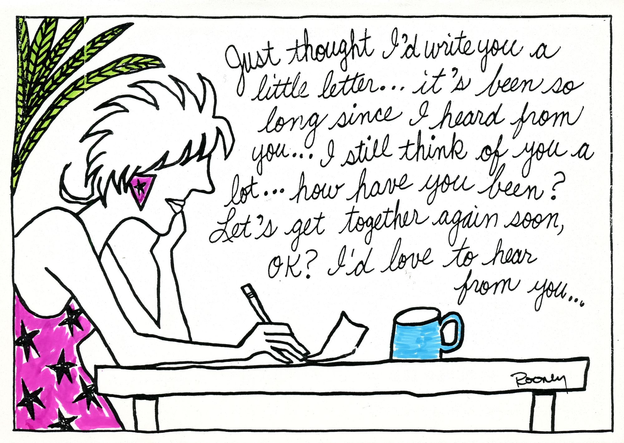 Jul 17, 2021 1 min read Just Thought I'd Write You From the RooneyToons card line. The punch line inside is "Are you going to pay me back or what?" Enjoying these posts? Subscribe for more Subscribe now Already have an account? Sign in