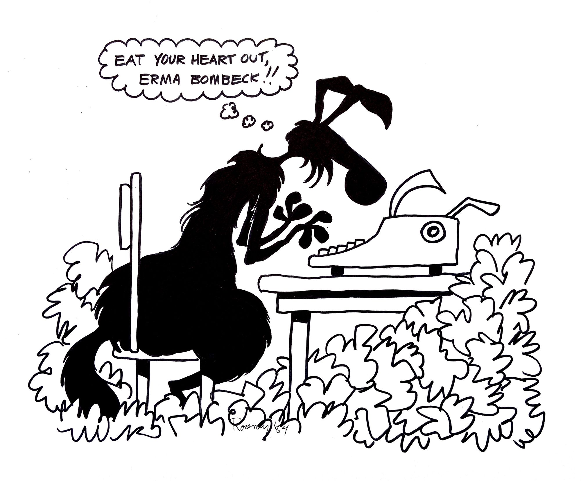 What she was good at, however, was humor. Erma Bombeck was her favourite author. I drew this to make her laugh.