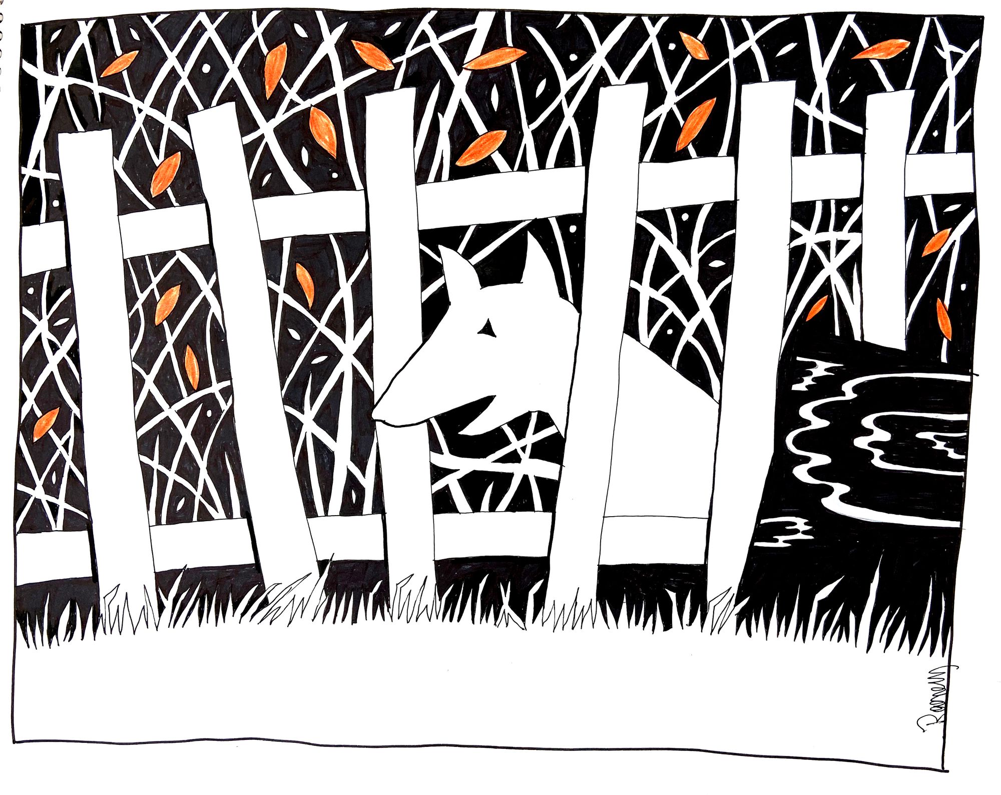 This photograph would have been from one of the first B&W rolls I ever shot. I have a vague memory of there being red berries or leaves in the tangle of foliage. The drawing was a bit of whimsy based on that old photo.