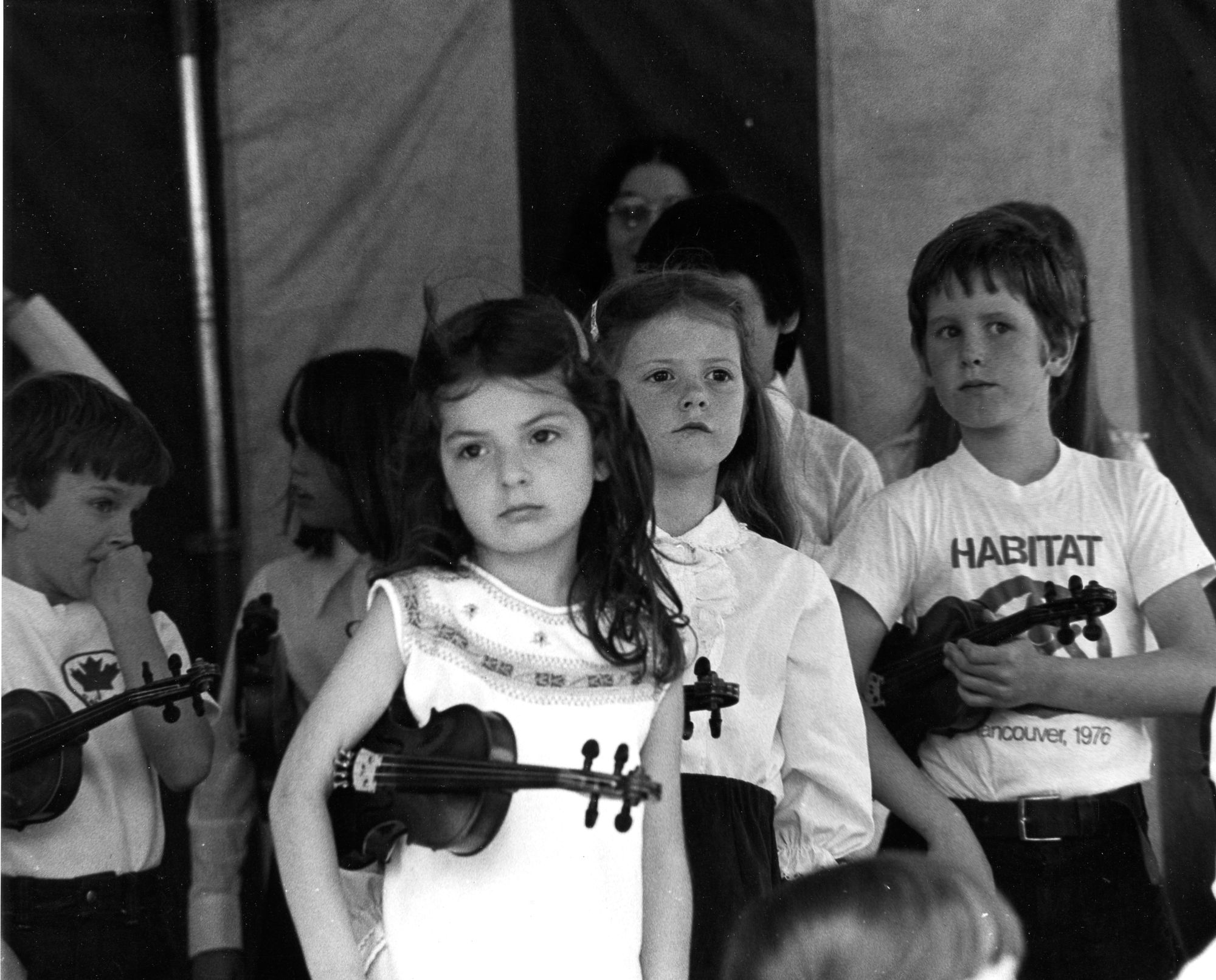 Circa 1976. This was a 135 mm shot taken at a children's concert in downtown Vancouver. These kids were in the Suzuki Strings, a music program for kids affiliated with the Vancouver Academy of Music. As a child who played clarinet in a city band for nine years, I can relate to the mind-set of children waiting to start a concert. I just love the various facial expressions.