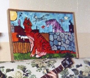 I thought for some time that the building imagery I repeat so often was due to Carel Moisevitch's influence, that is, until I ran across this ancient photograph. This painting was done in university art classes circa 1971 and clearly shows early skyline and building aspects. My friend Lois has the original. Sorry it's so blurry.