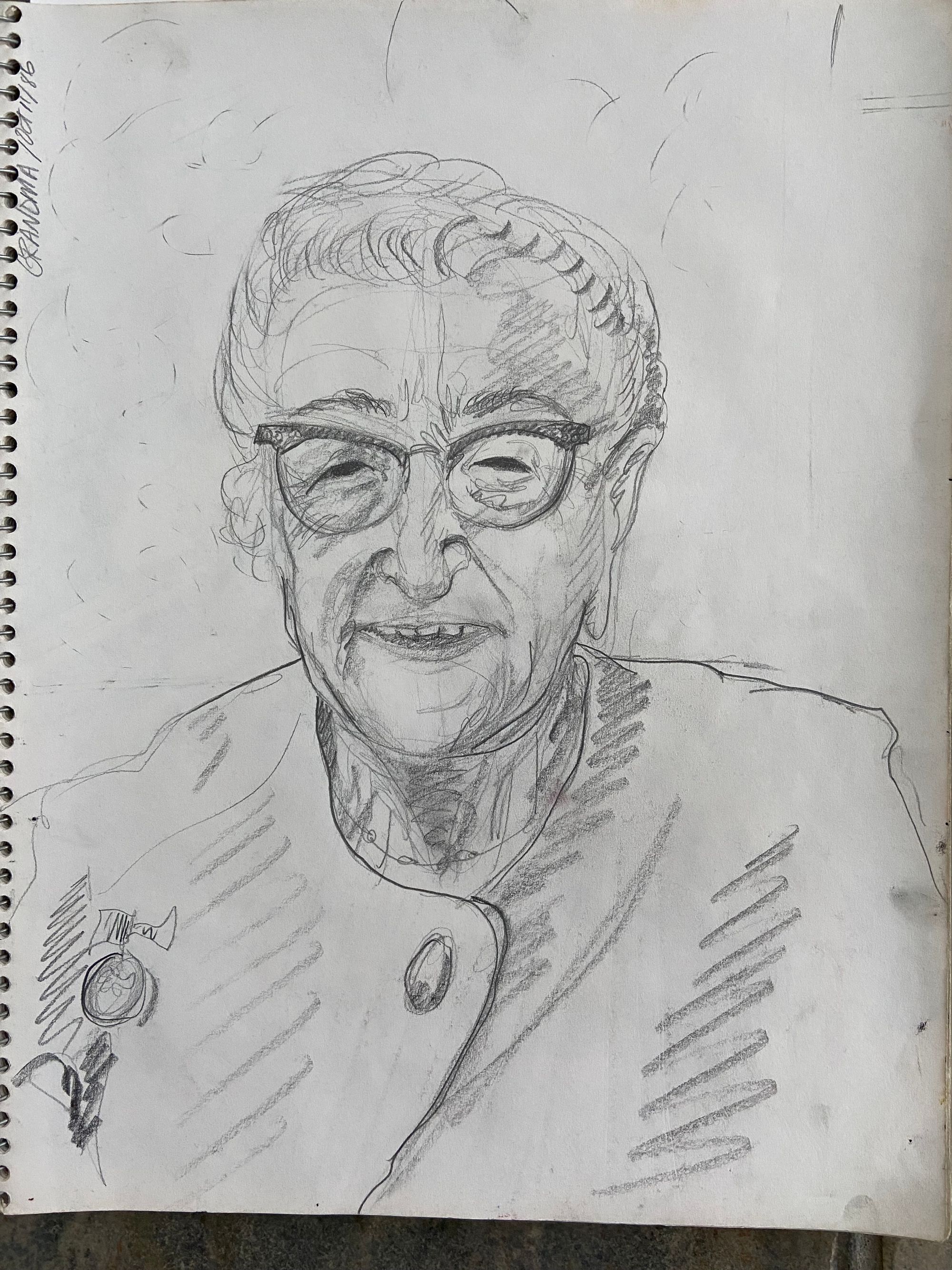From a photograph, Grandma on Mother's Day, lunch at the K Motel.