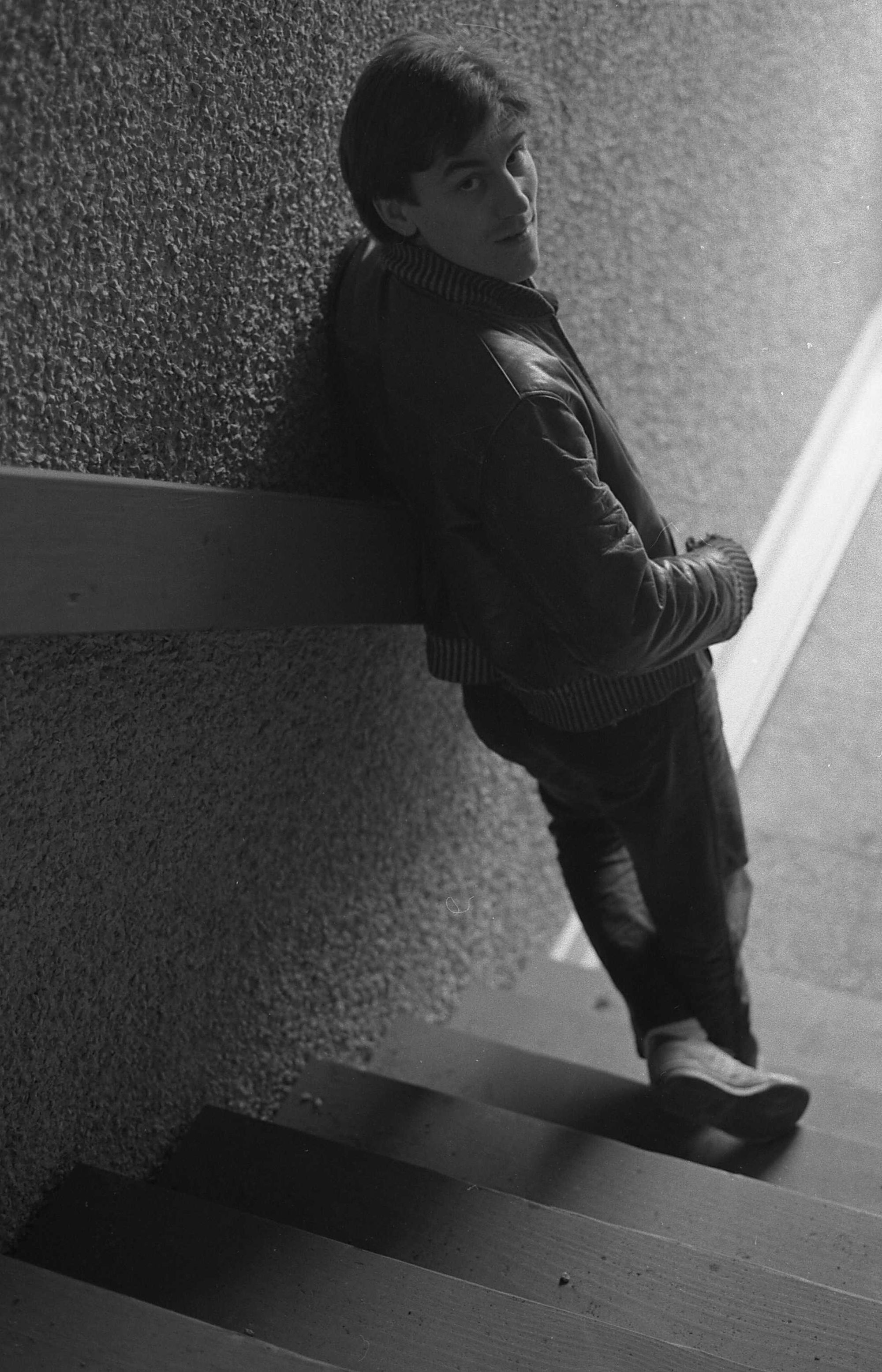 This was a deliberately posed shot. My intention was to enter the finished print in a show, but ultimately I wasn't satisfied with it. I wanted sharper focus (we were sticklers for proper focus with most shots). Stephen had to stand like this for several minutes while I fiddled.