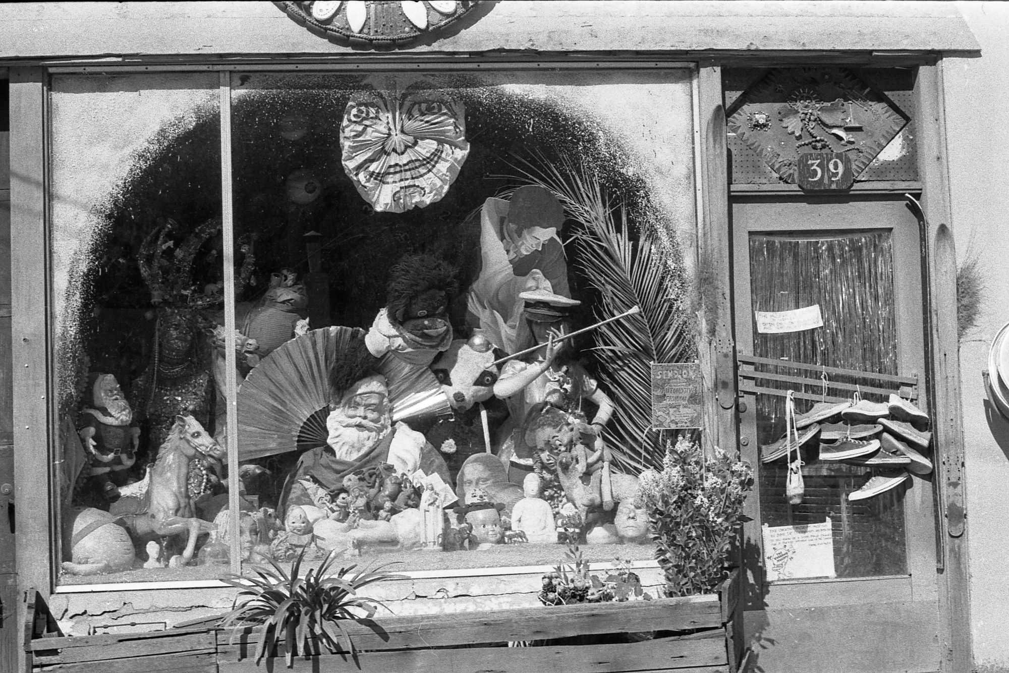 Circa 1976. My friend Terry and I drove to San Francisco one summer and stayed a couple of days in Mill Valley. We ran across this wild and wonderful store that I could not resist photographing. It was closed for the day so I don't know what they sold. Or maybe it was a permanent art installation.