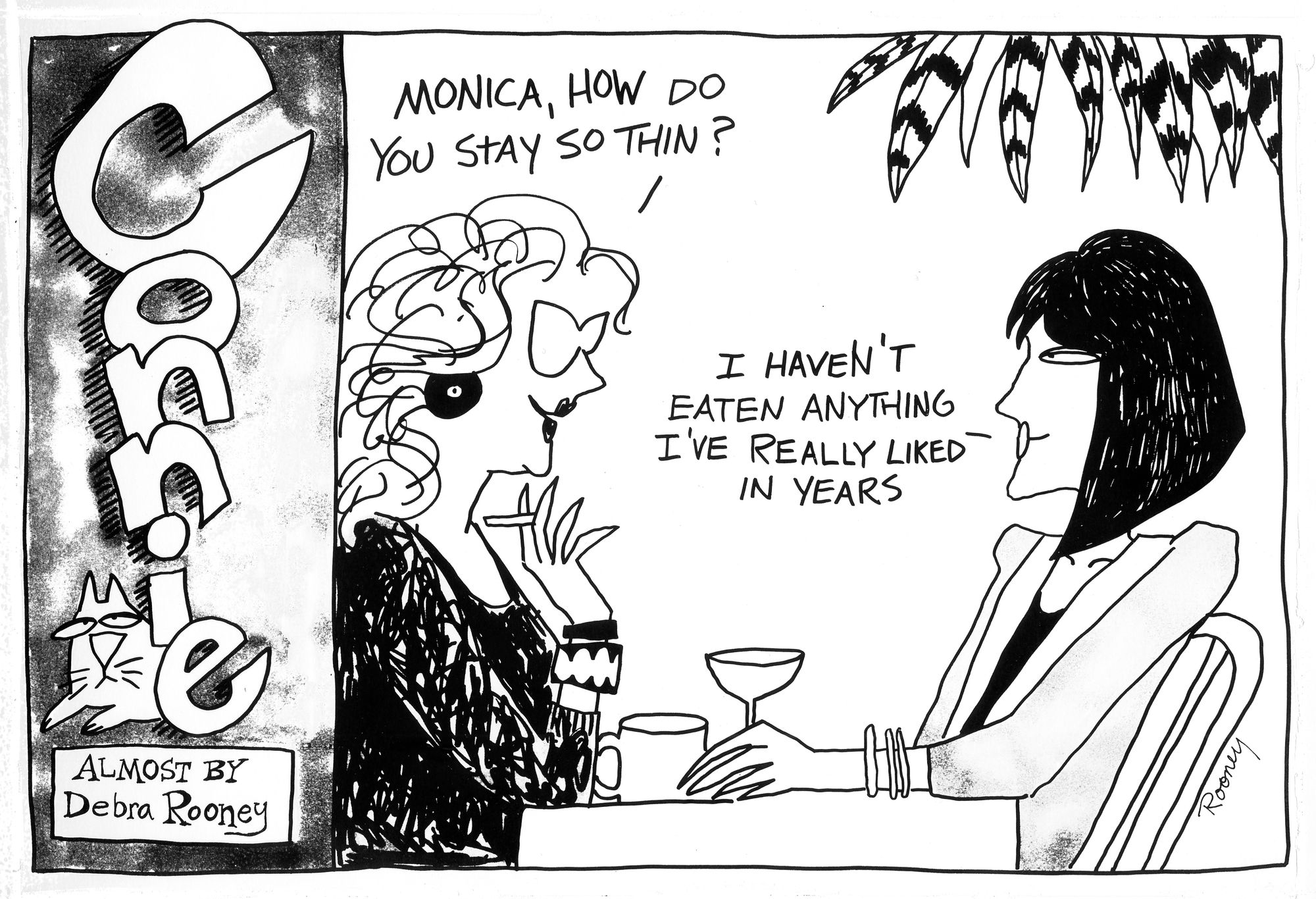 If you look closely, many of the little 'bits' in this cartoon series have a basis in real life. For instance, Connie didn't drink – there's never an alcoholic drink in front of her.