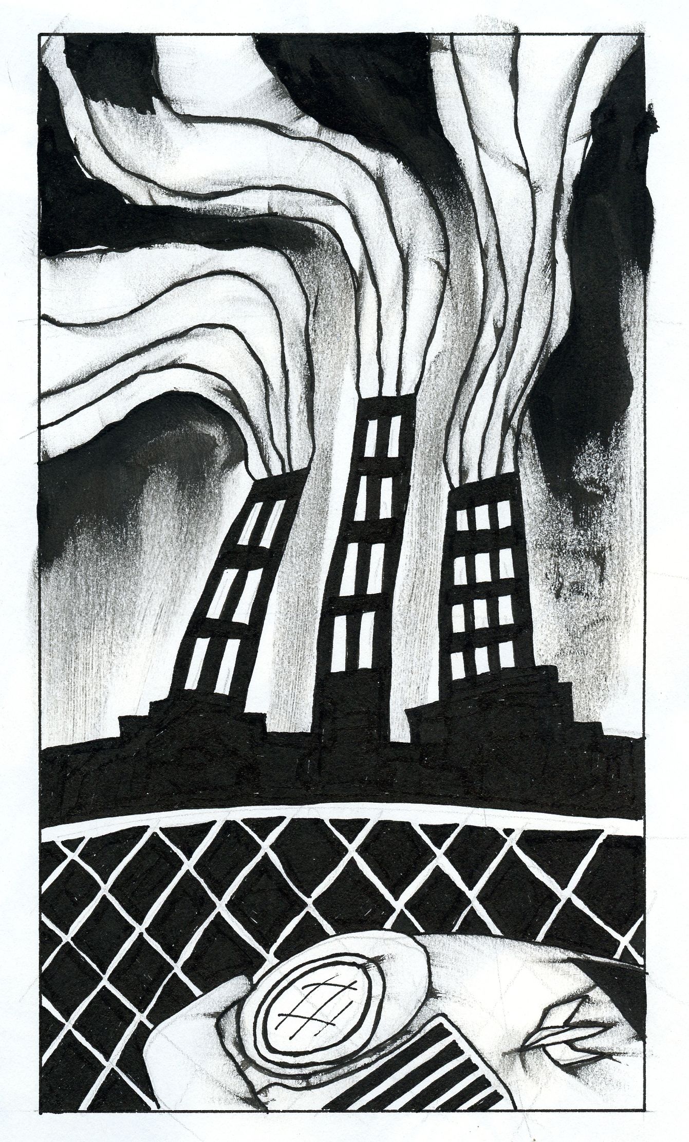 Feb 15, 2022 1 min read Smokestacks India ink, calligraphy pen. And some very black hands. Enjoying these posts? Subscribe for more Subscribe now Already have an account? Sign in