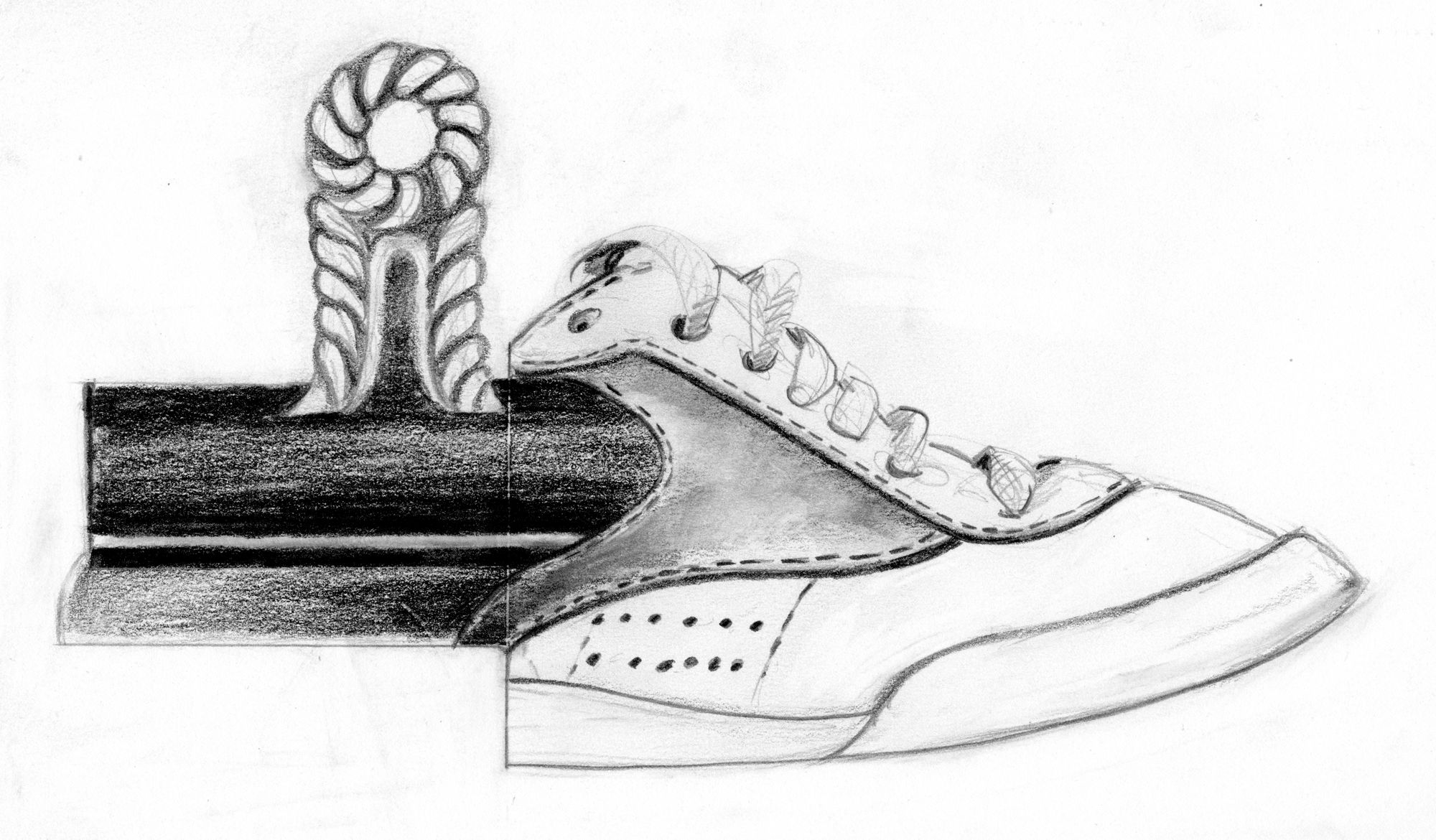 This was one of the few in-class assignments I did well on – "Go find two disparate items in the area and combine them in one drawing".