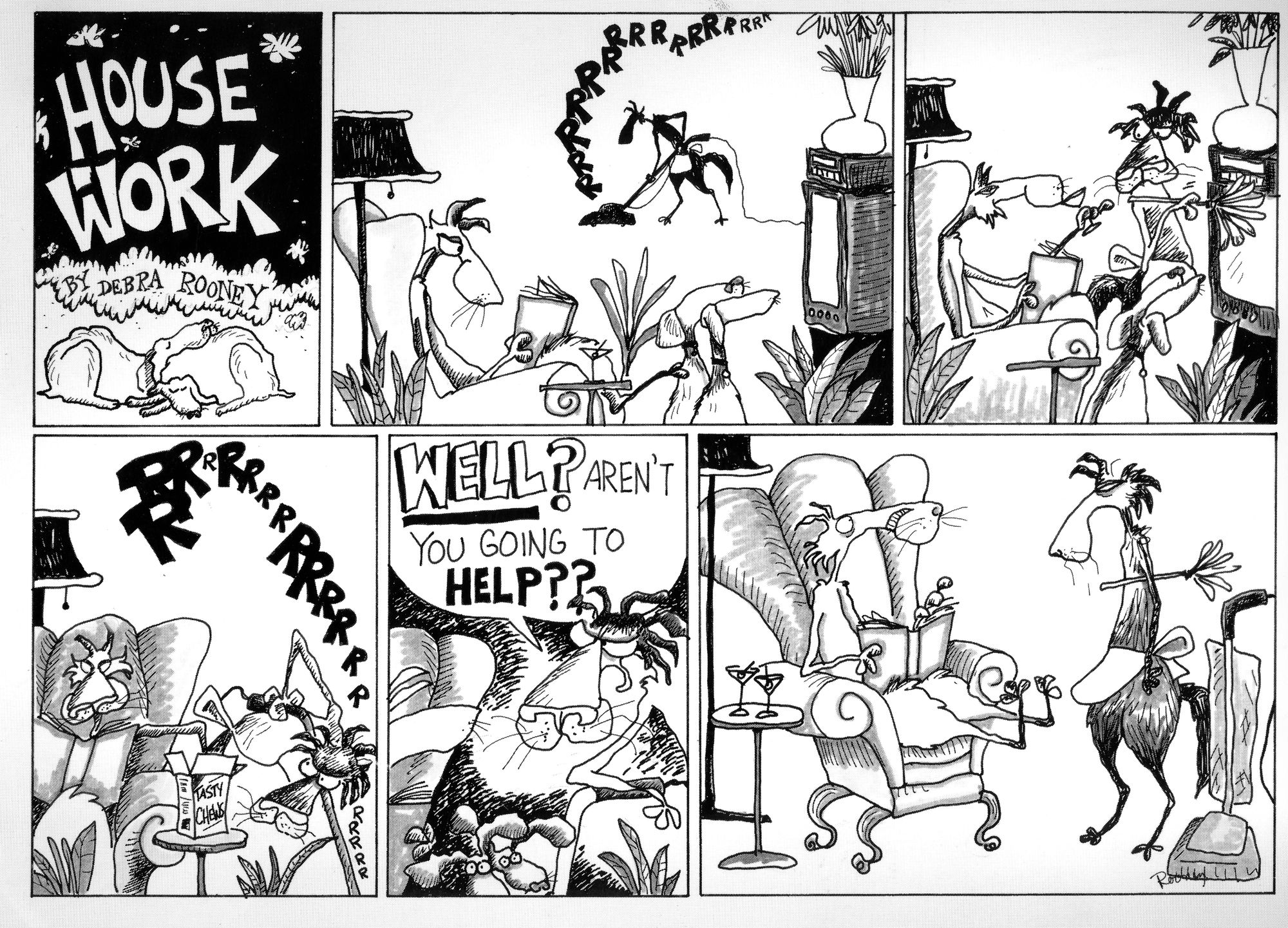 Circa 1985. This was a commissioned panel – a fellow saw my cartoons at Catablanca books and wanted the gag to tease his boyfriend. It was a fun job. And of course, always fun to get paid to draw.