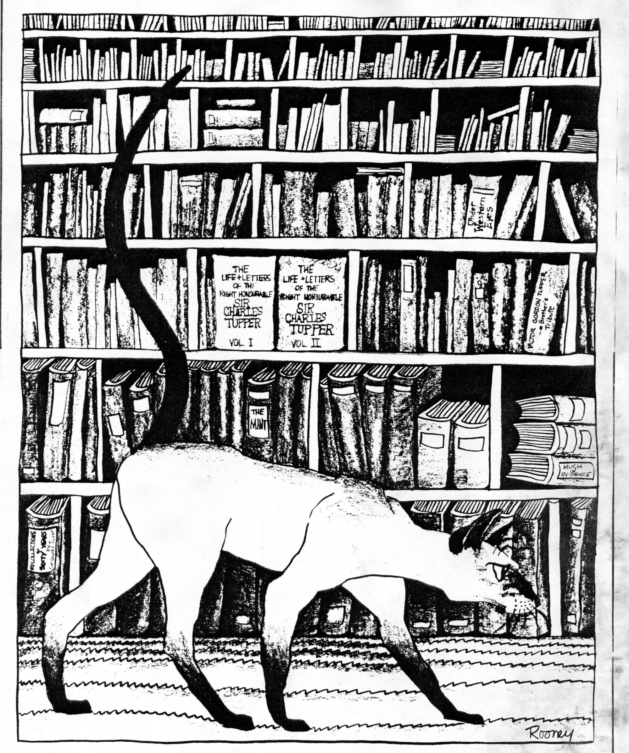This was a commission for a local bookseller who a) loved books and b) had a Siamese cat. He wanted both combined in one drawing. Siamese cats have a very distinctive head shape so I spent an afternoon sketching his cat to get it right.