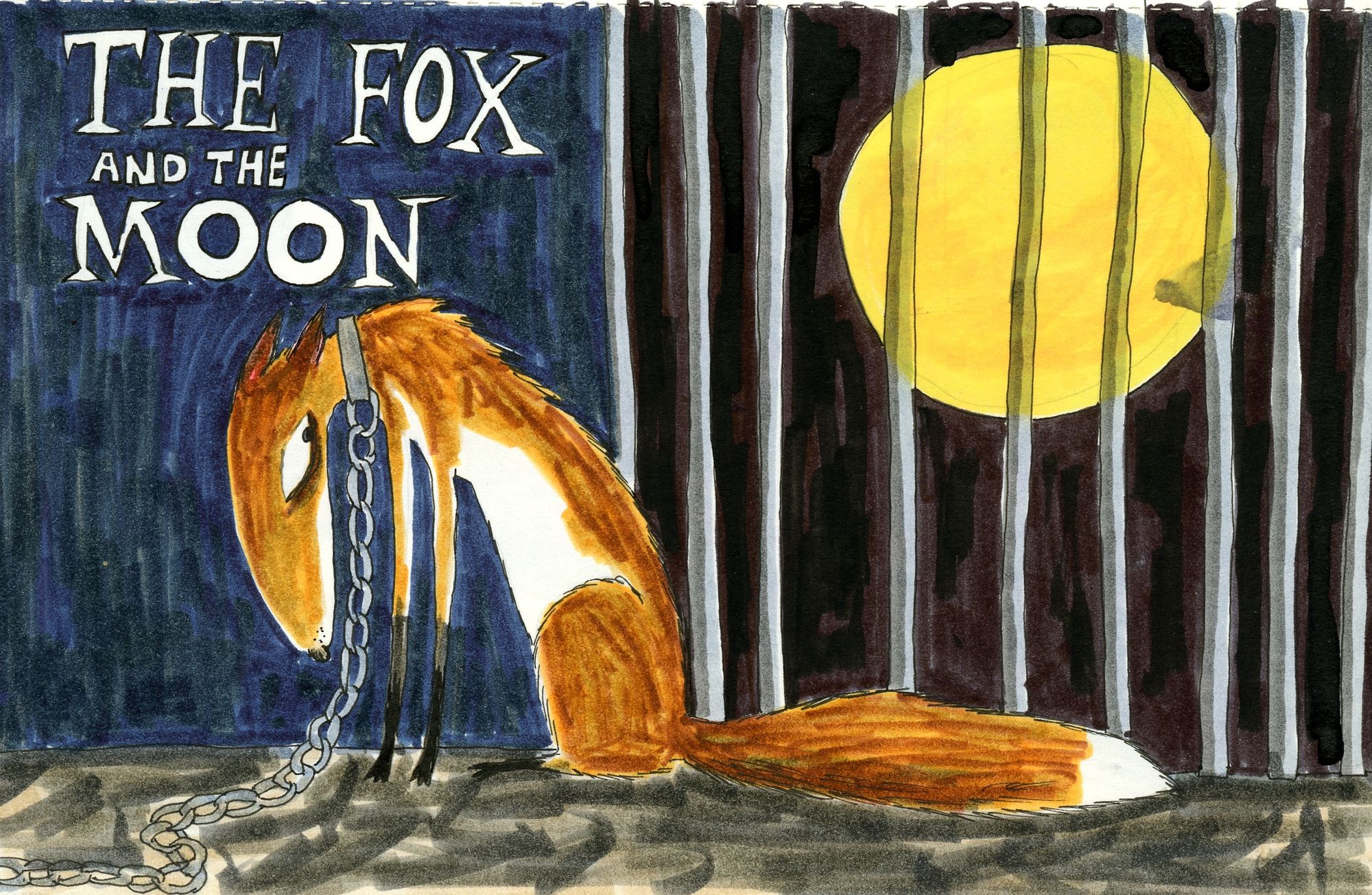 Class assignment – make a cover for a children's book. Felt pens. I can't remember if I actually started writing a story. It would have been fun to draw more foxes!