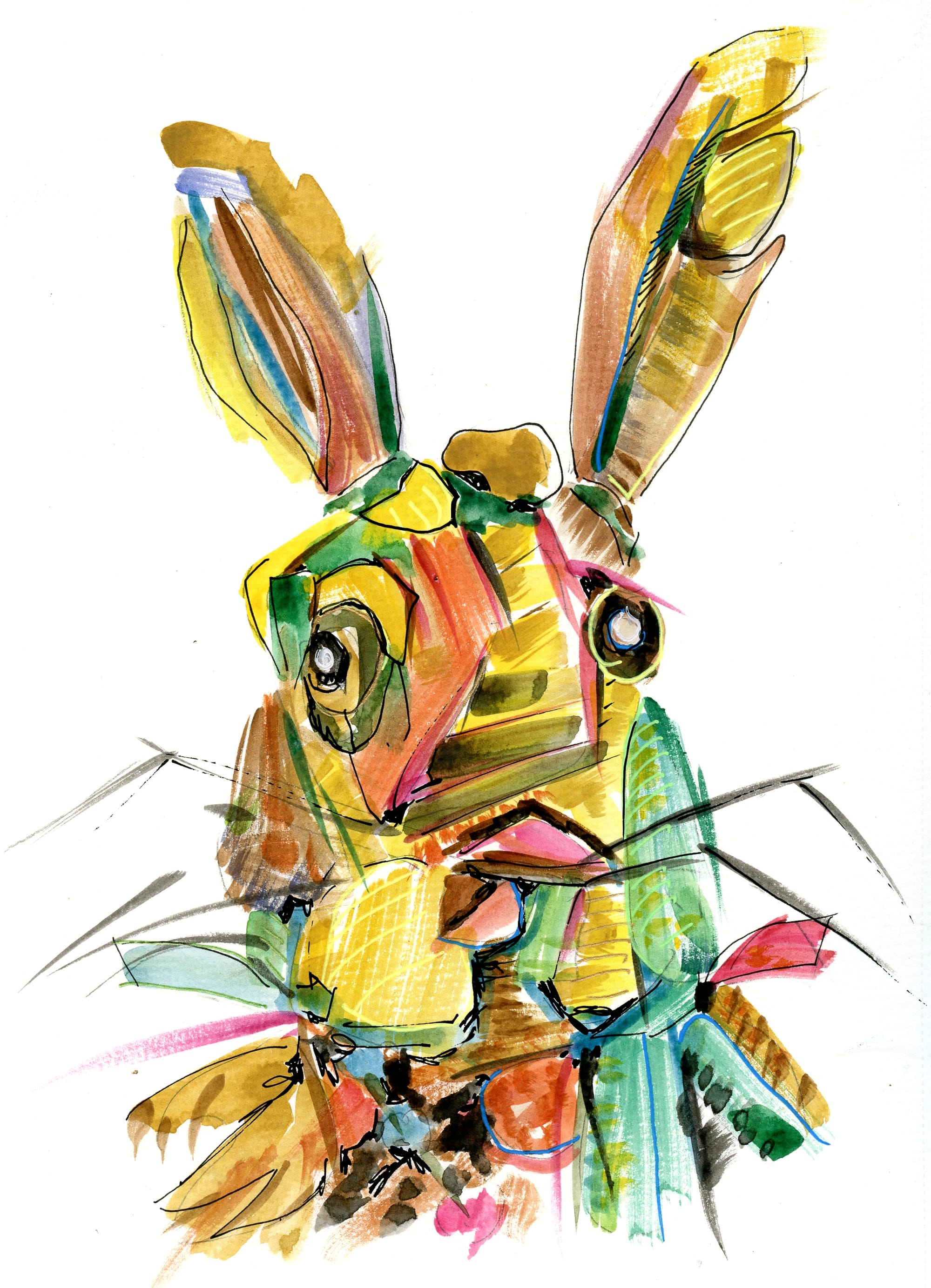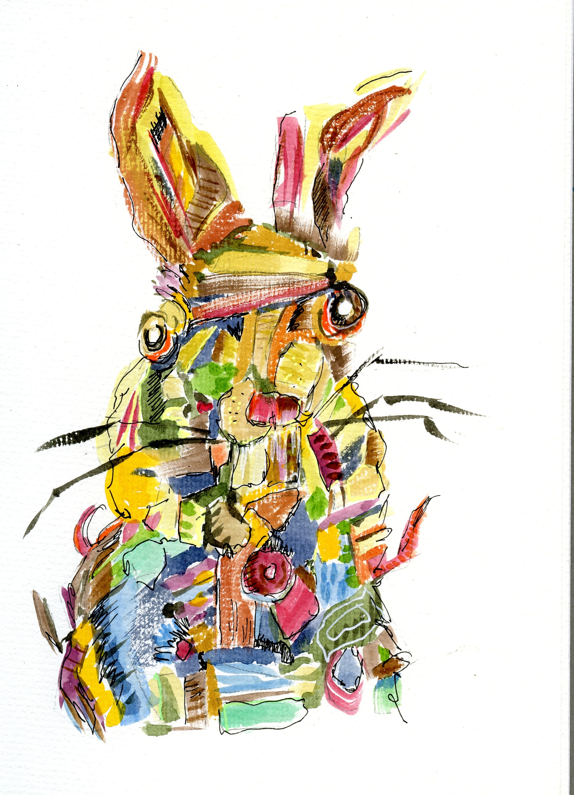 Watercolour, metallic paint, India ink, watercolour pencil and Posca pen.