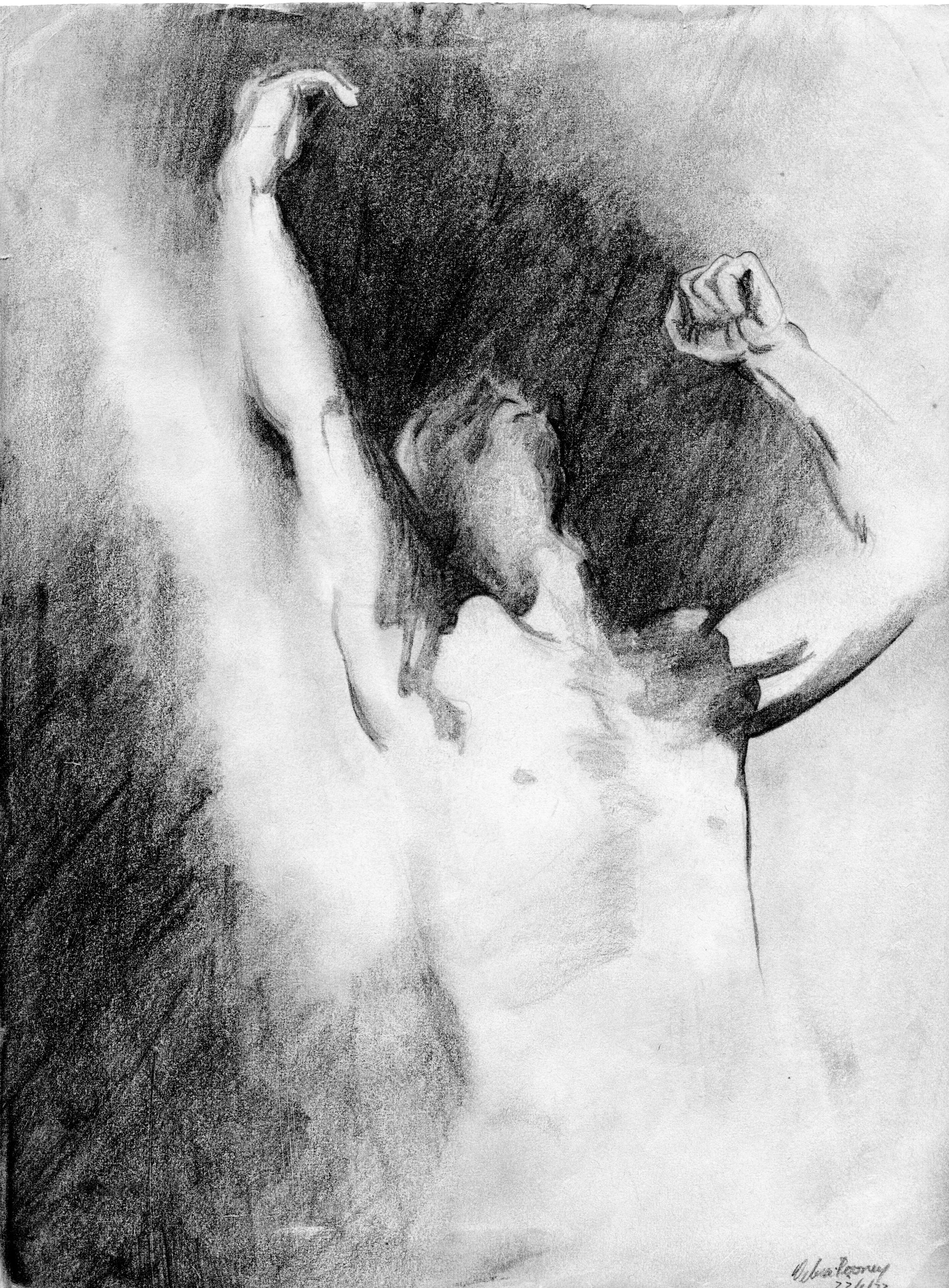 Circa 1972. First or second year university. This was copied from the cover of a paperback novel 'The Fountainhead' which everybody was reading that year. I really had no clue what it was about but it was the fashionable thing to read at the time.