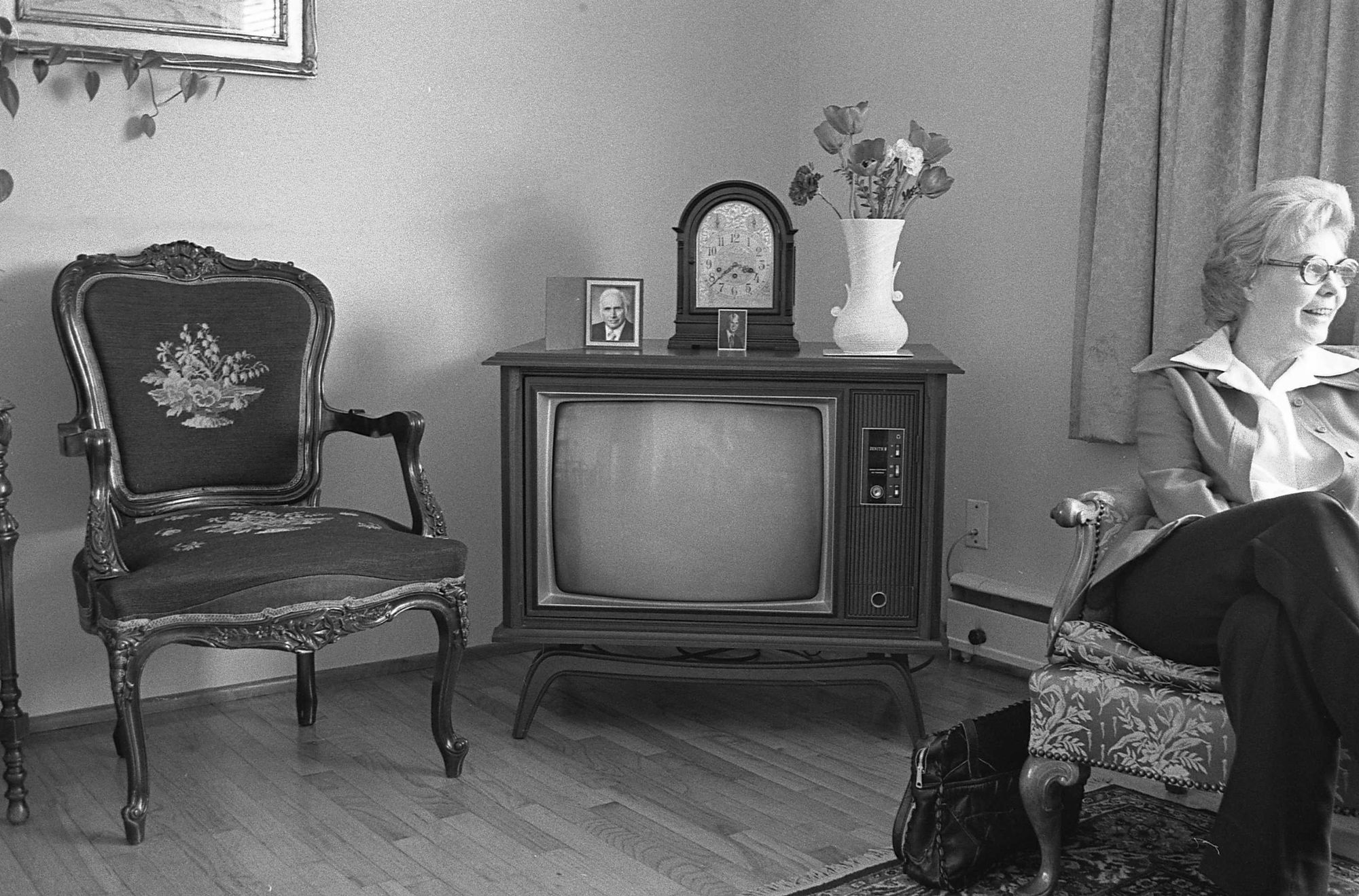 Victoria, circa 1976 (?) This is my mom visiting a friend whose husband had died. There was something about the tidy apartment with the husband and son's photos on the TV that told a quiet story. This was very typical decor for the era and resident. Who was that lady? I can't remember.